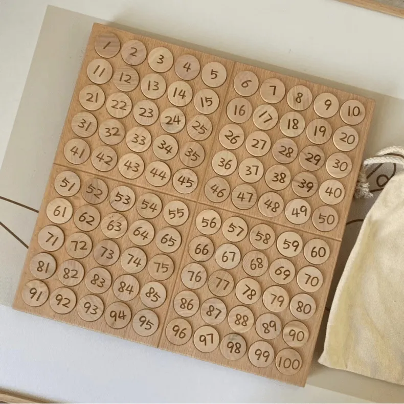 Introduce your child to the fascinating world of numbers and mathematics with the Montessori Teaching Aids Mathematics Enlightenment English Hundred Board. Designed to engage young minds and encourage independent learning, this educational tool helps children develop a strong foundation in number recognition, sequencing, and basic arithmetic. The Hundred Board is a key component of Montessori education, providing hands-on, interactive learning that makes mathematics both fun and meaningful.