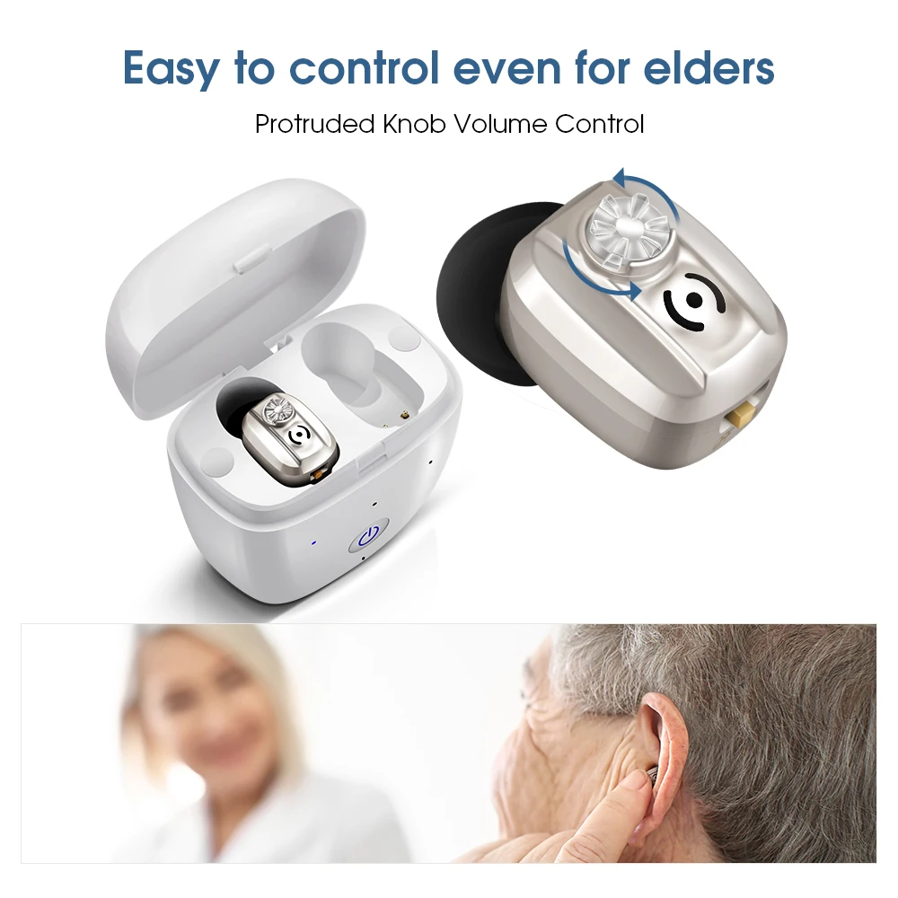 In Ear Hearing Aid Mini Rechargeable Hearing Amplifier Digital Hearing Aids with Charge Case for Moderate to Severe Hearing Loss