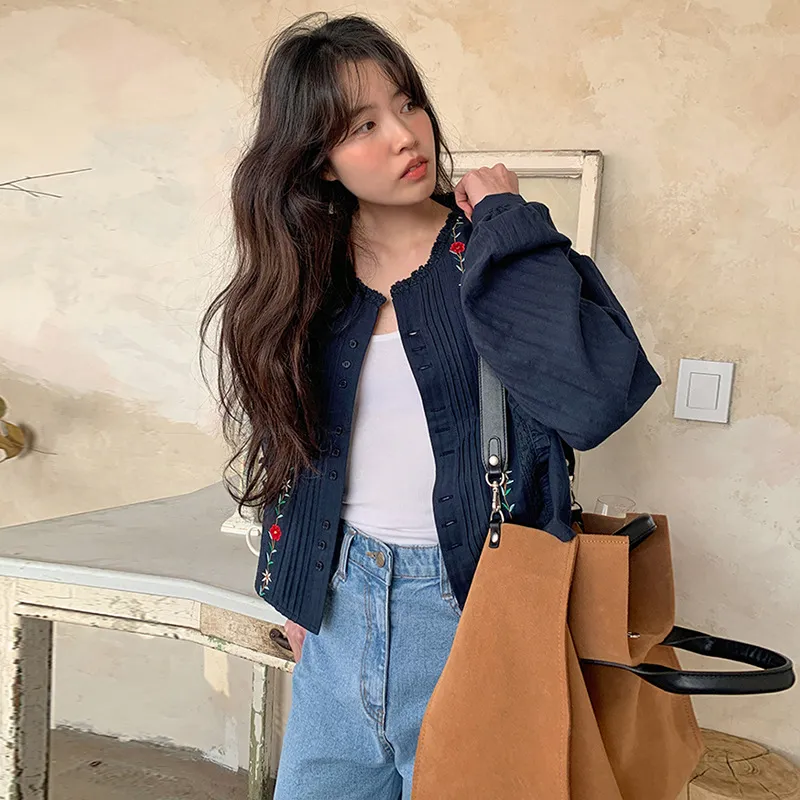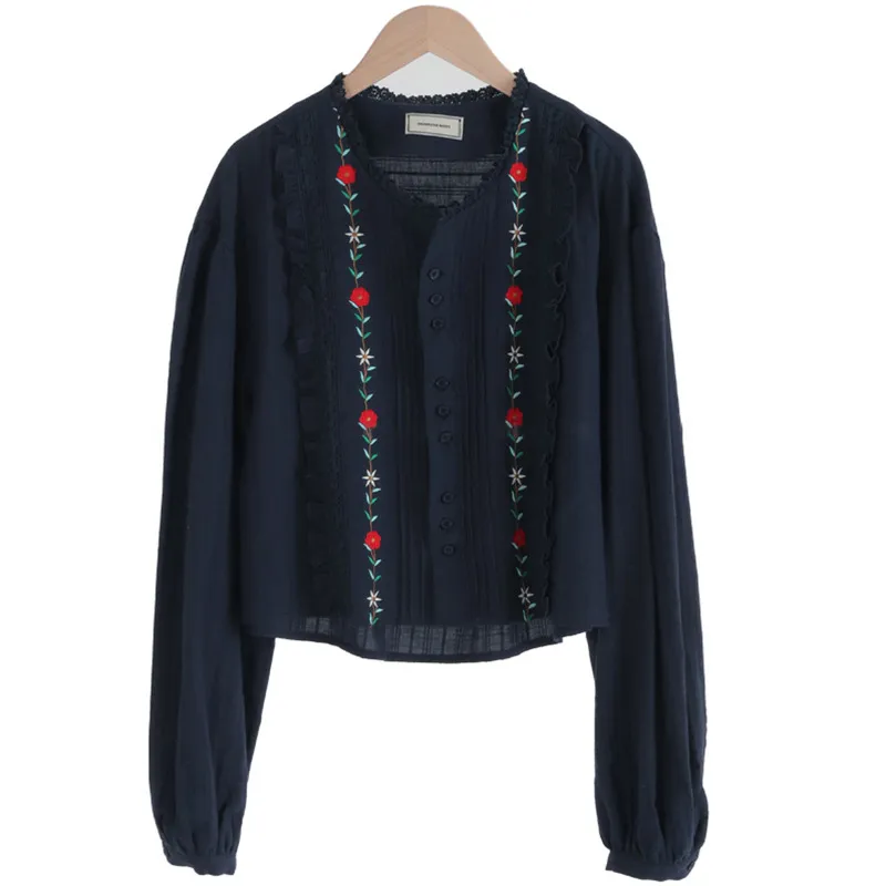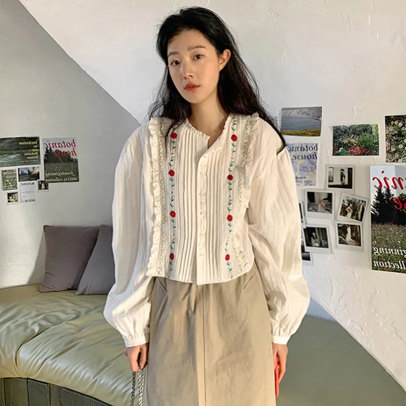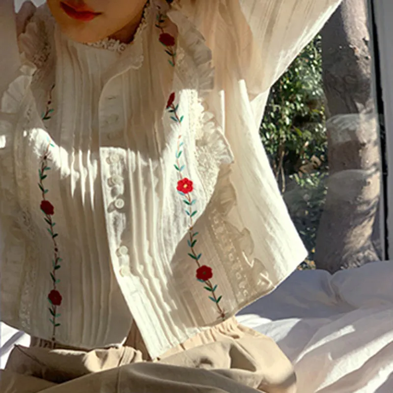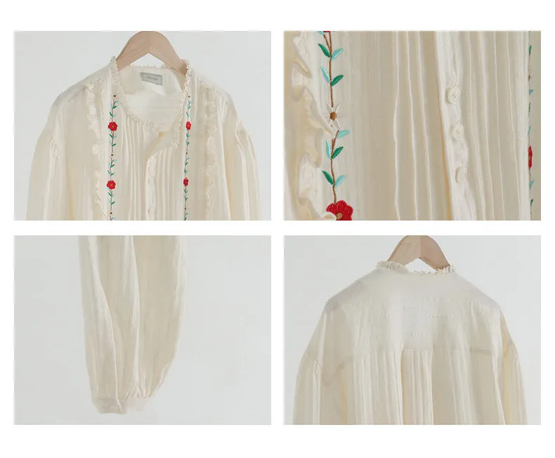 Mori Age-reducing Temperament Embroidered Cotton Shirt Women