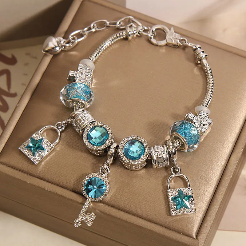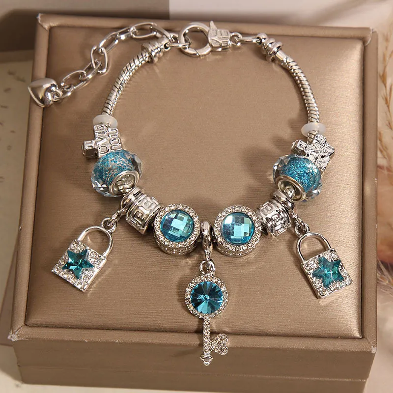 Home › Plants, Gifts, Toys & More › Gift-tree-mori-style-blue-glass-bead-key-lock-bracelet