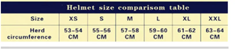 size chart to choose the right helmet.