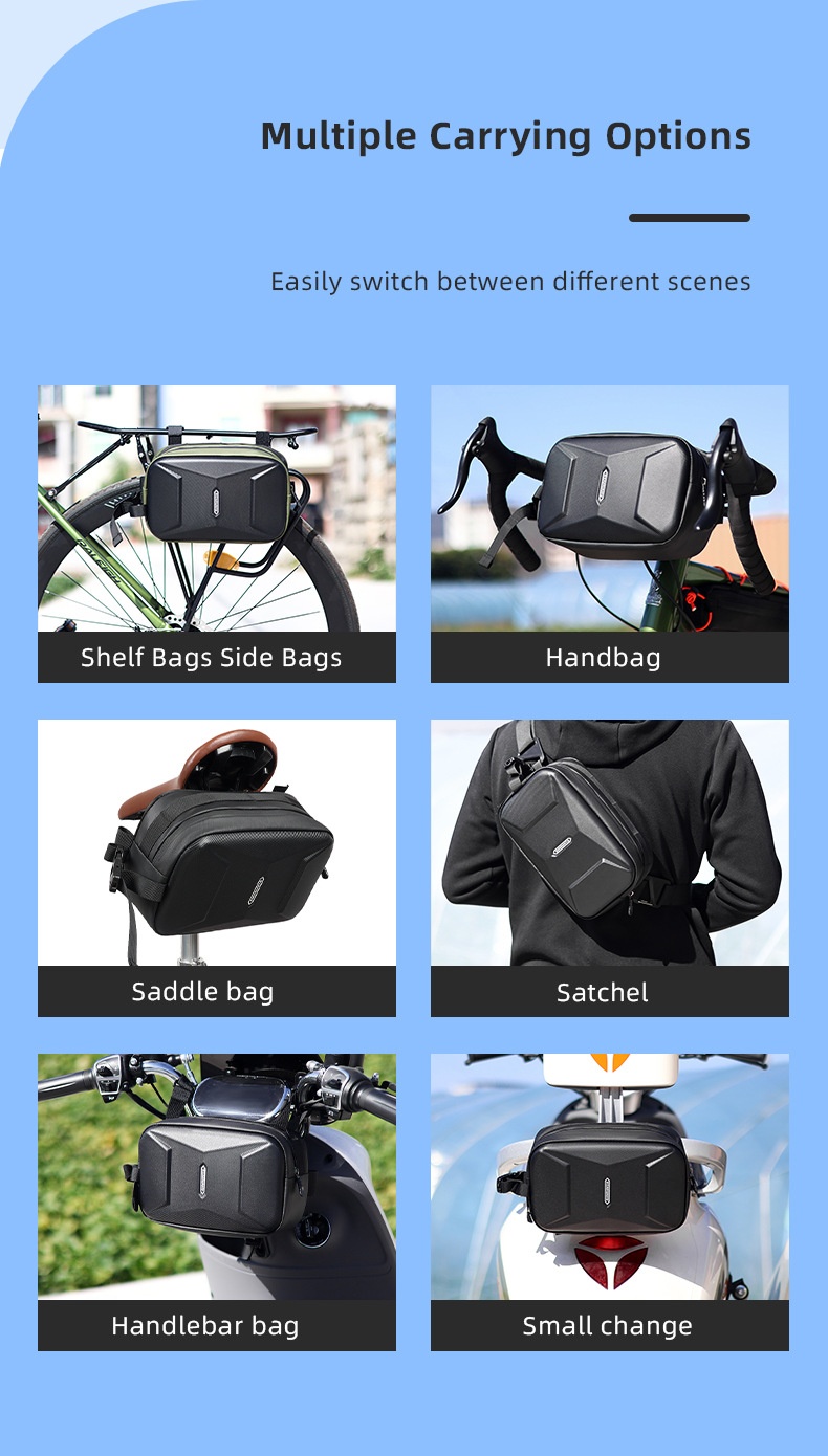 Designed to effortlessly mount onto the front of your mountain bike, the MountShell Front Cargo Bike Case provides ample storage space for all your essentials, whether you're embarking on a weekend bikepacking trip or simply commuting to work. Its large capacity ensures that you can comfortably carry everything you need, from spare clothing and tools to snacks and hydration packs, allowing you to ride with confidence knowing that your gear is securely stowed away.