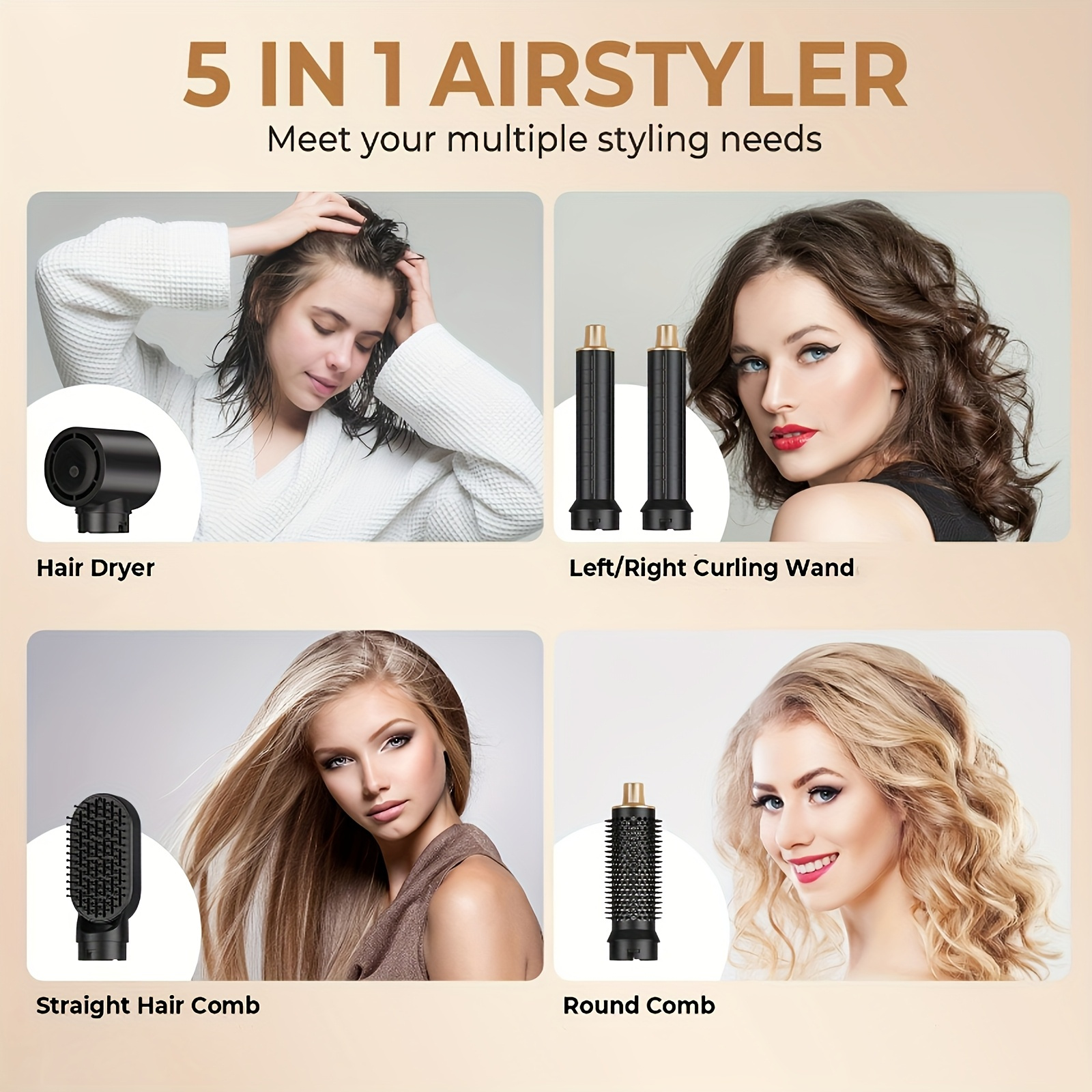 - Multiple Styling Attachments: Curling barrels, smoothing brush, round brush, and dryer head