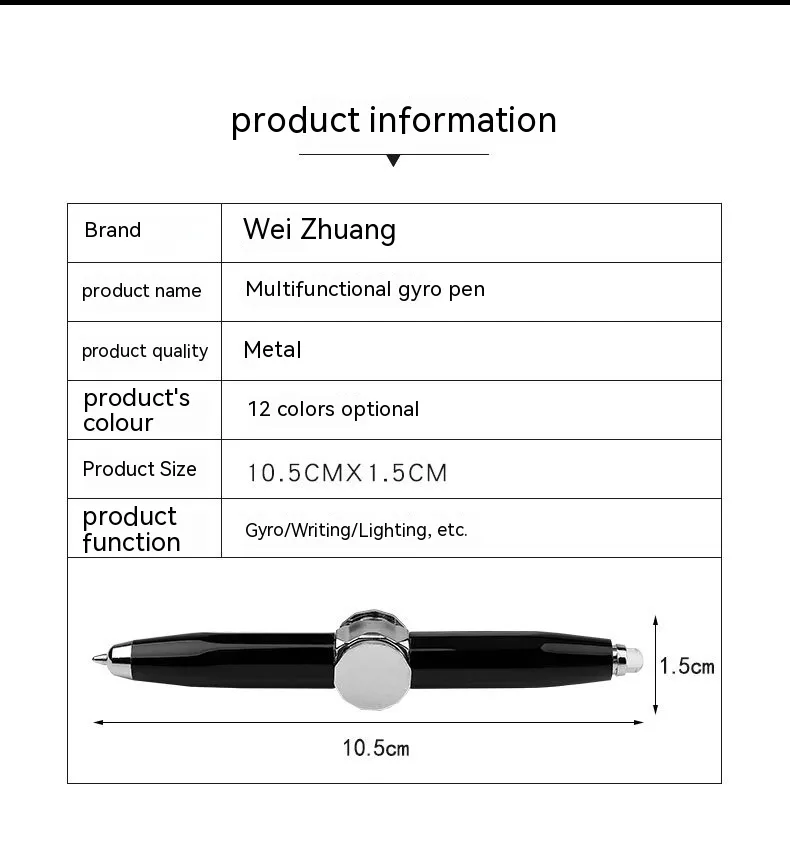 Made from high-quality materials, the Multi-Function LED Pen Spinning Decompression Gyro is designed to withstand everyday use. The spinning mechanism and LED lights are durable and built to last, meaning you’ll get long-term enjoyment from this stress-relief toy. Whether you spin it constantly throughout the day or use it occasionally, this pen will remain in great condition, providing reliable performance for years to come.
