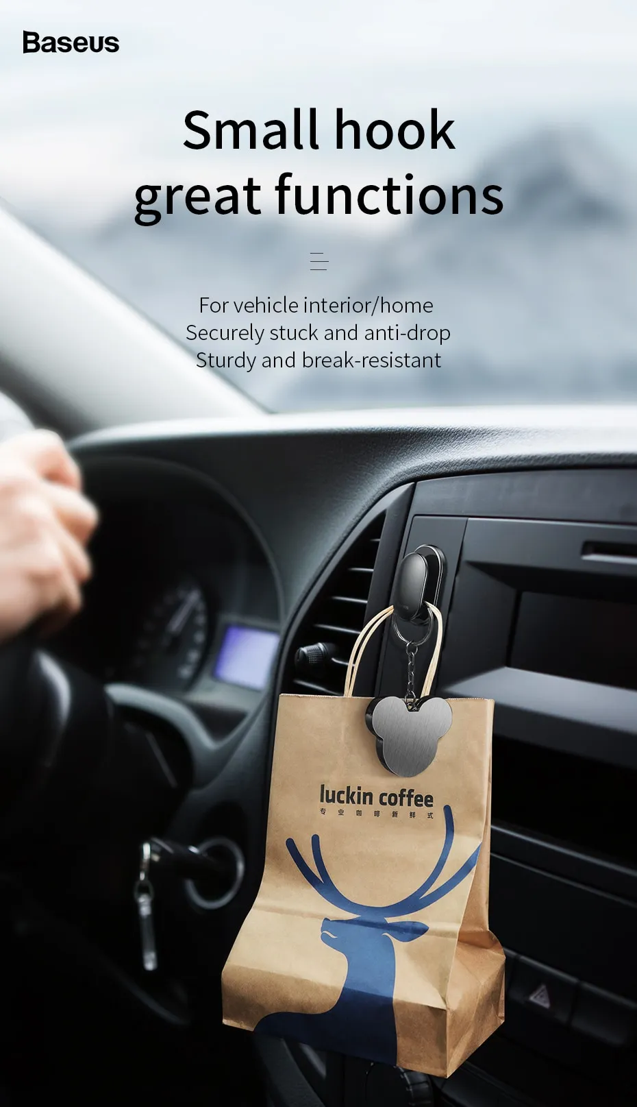 The compact size of the hook makes it ideal for small vehicles with limited storage space. It provides a convenient solution to keep your items off the seats and floor without taking up much room.