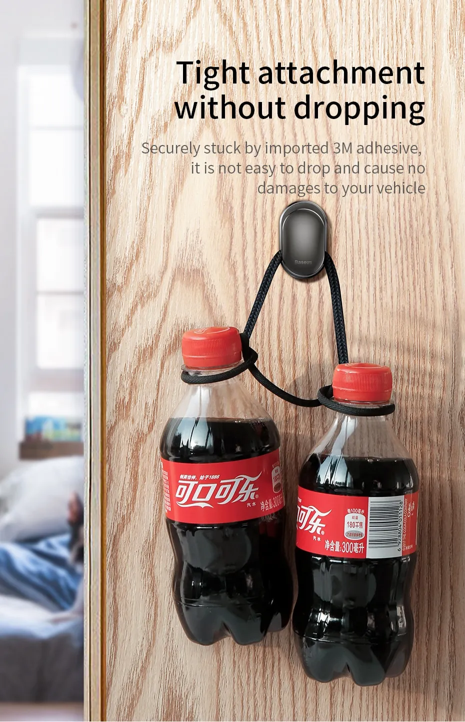 The hook comes with an easy-to-use adhesive backing that allows you to securely attach it to any smooth surface inside your car, such as the back of seats, doors, or the dashboard. No drilling or tools required, making it a hassle-free installation.