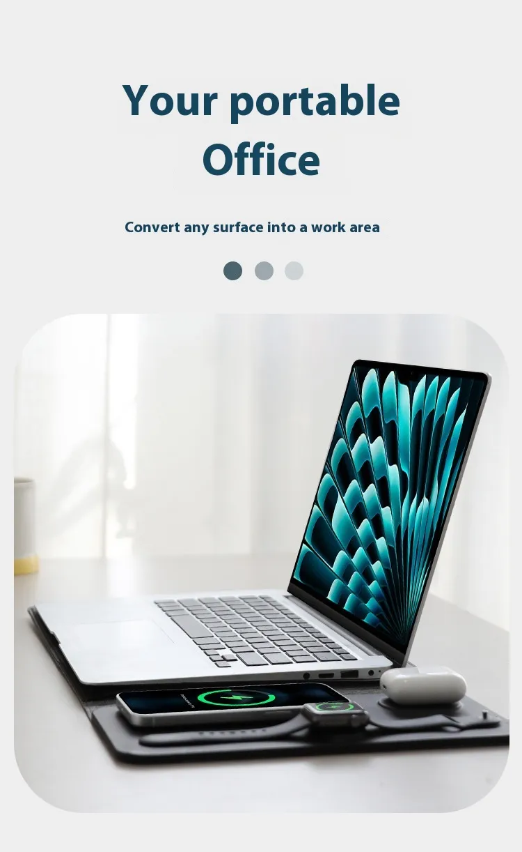 This 3-in-1 solution simplifies your life by combining a laptop bag, wireless charger, and magnetic charging dock into one compact device. You no longer need to worry about multiple cables or chargers, making it a perfect addition to your workspace or travel kit.