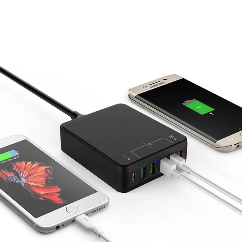 With multiple charging ports in one unit, you can say goodbye to the clutter of tangled cables and power adapters. The clean, organized design of the charger keeps your devices neat and within easy reach, making it perfect for home, office, or shared spaces.