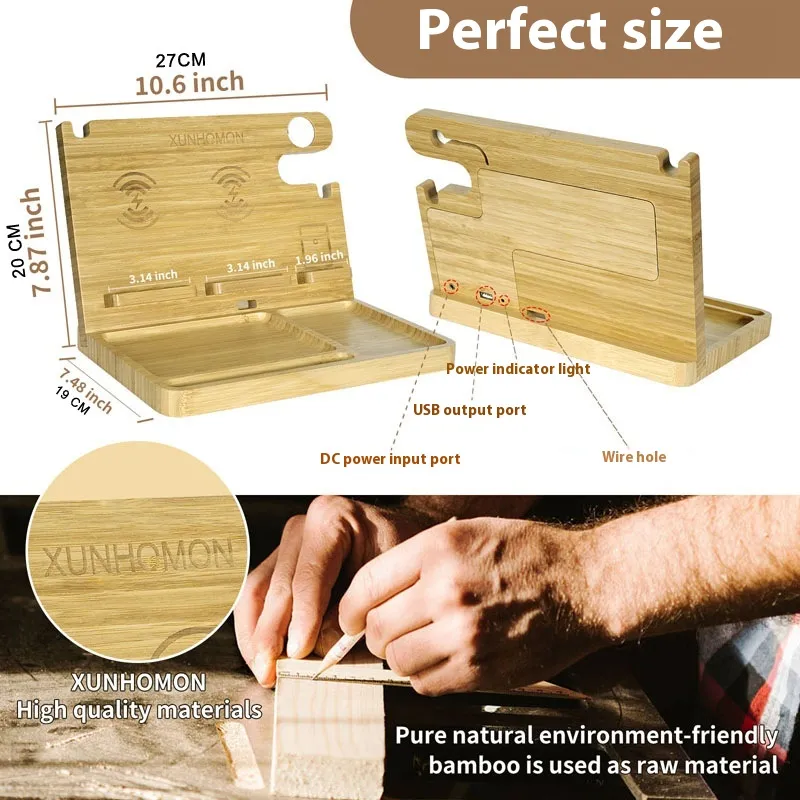 Multifunctional Bamboo Wireless Charger Bracket
