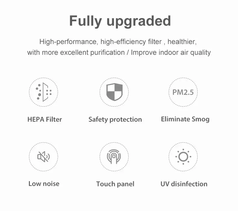 1. 4-Layer High Efficiency Filtration - HUIQIMEI air purifier with H13 HEPA high efficiency filter can effectively filter 99.97% of any air pollutants larger than 0.3 microns, such as pollen, allergens, dust, smoke, PM2.5, pet odor, etc. Improve the air quality around you and give your family peace of mind and comfort with this home air purifier that is ideal for allergy and pet owners.