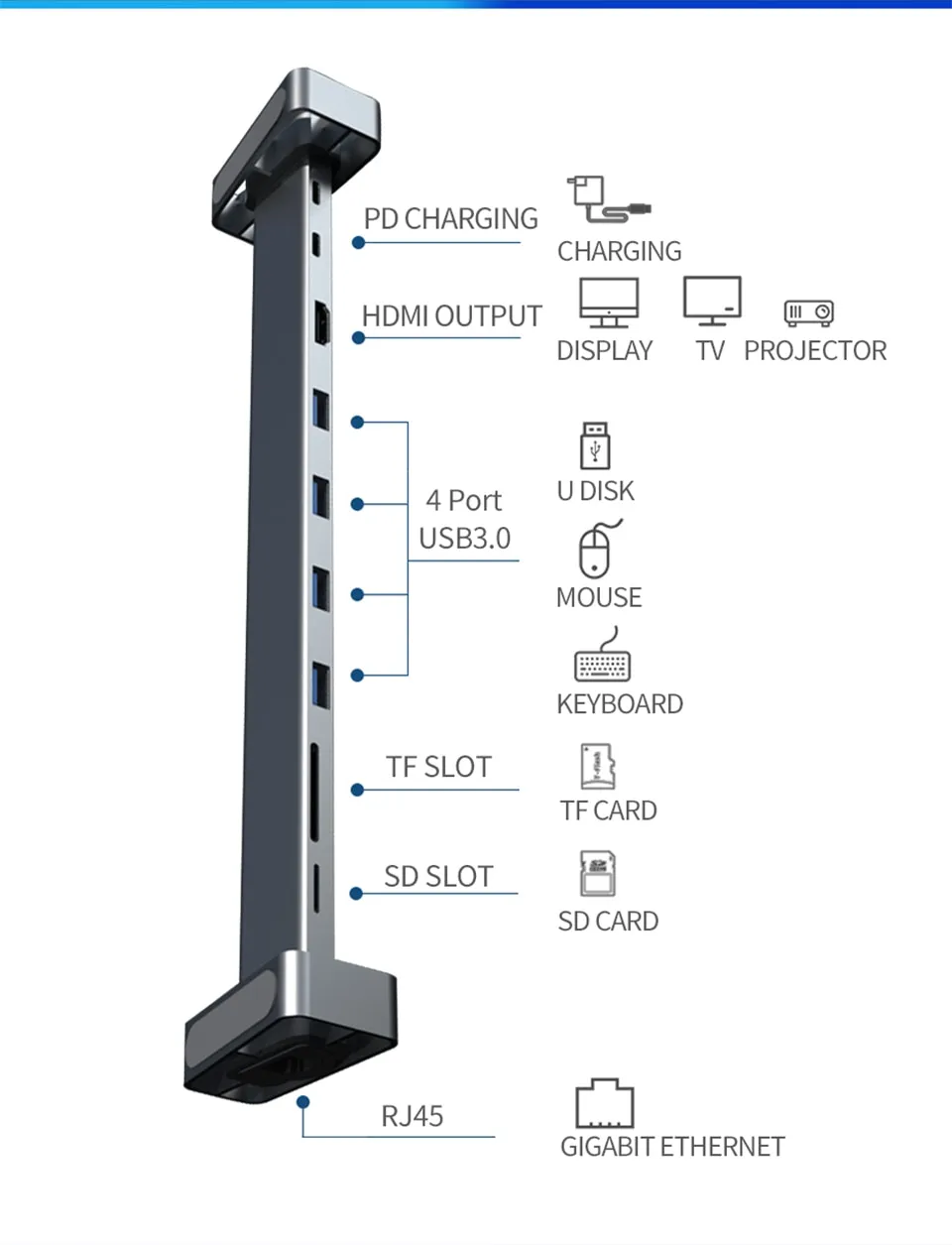 The docking station’s adjustable bracket design allows you to securely mount and position your projector or device at the perfect angle, enhancing your presentation and viewing experience. Its network cable splitter function ensures a stable and fast internet connection, making it an ideal solution for video calls, streaming, or any online activity. The sleek, compact design fits neatly into any workspace, providing both function and style without adding bulk. With its easy plug-and-play setup, this docking station is user-friendly, making it perfect for professionals, students, and tech enthusiasts alike.