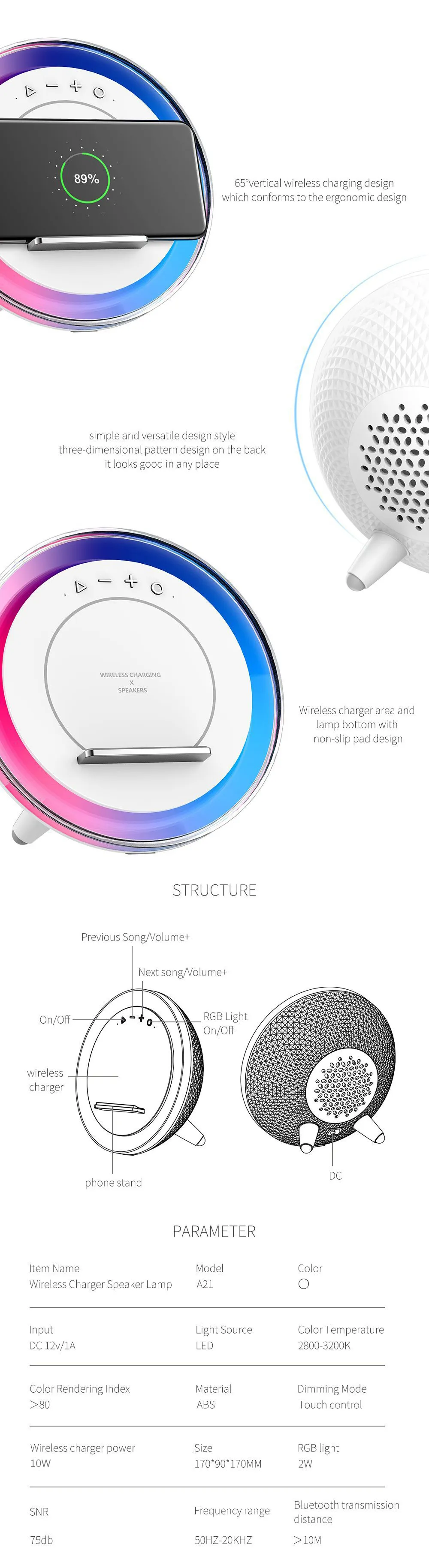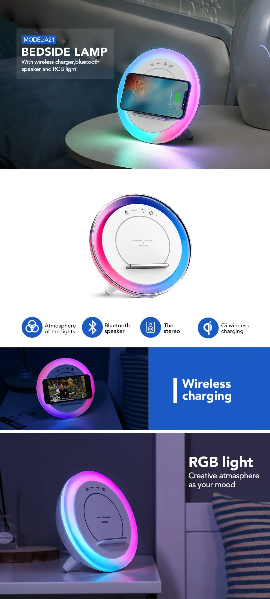 The Multifunctional Lamp Mobile Phone Wireless Charger Bluetooth Speaker Small Night Lamp is the ultimate all-in-one gadget for your modern lifestyle. Combining a high-quality night lamp, wireless charging station, and Bluetooth speaker into one sleek device, this multifunctional lamp is designed to make your life easier, more convenient, and stylish.