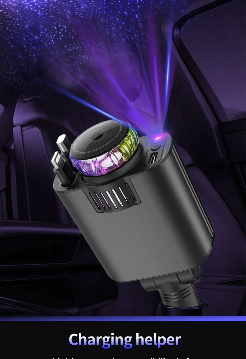 Charge your devices in style with the Multifunctional Purple Light Car Phone Charger, designed for New Zealand drivers who want a reliable and versatile charging solution. With its modern purple light design, multiple functionalities, and fast charging capability, this charger keeps your devices powered on the go.
