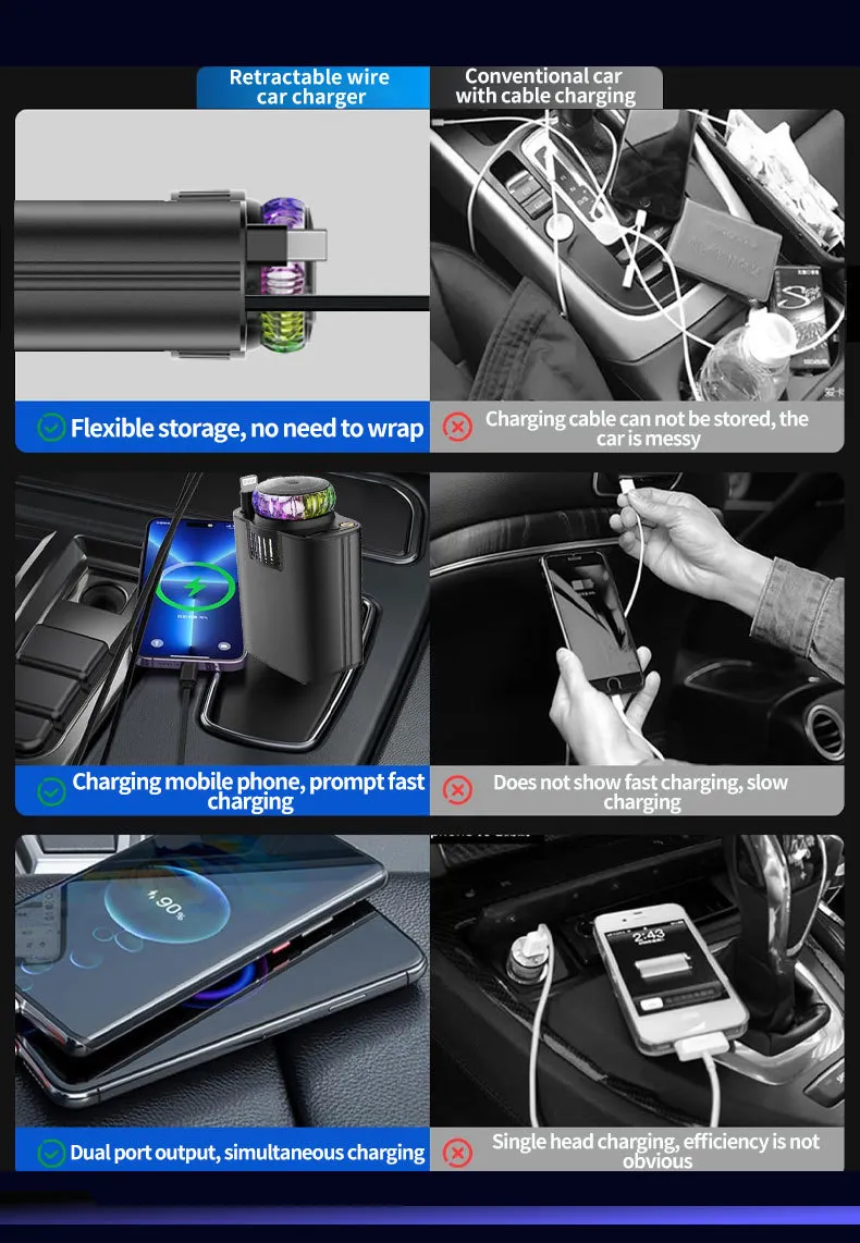 Equipped with advanced charging technology, this car charger delivers stable and rapid power to your smartphone, tablet, or other USB devices. Say goodbye to slow charging during your daily commute or road trips.