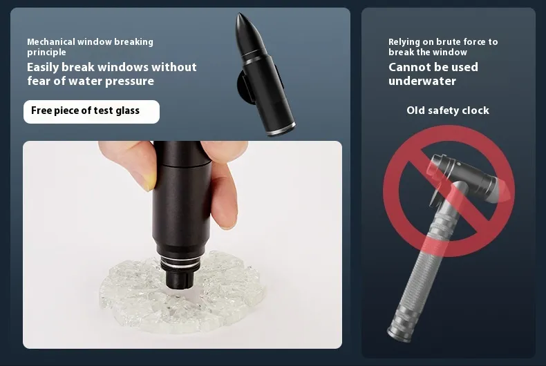 The primary function of this tool is to quickly and efficiently break vehicle windows in case of an emergency. Equipped with a hardened steel tip, this device provides the necessary force to shatter a window without excessive effort. This feature is especially critical in situations where you may be trapped inside a car and need a fast escape.