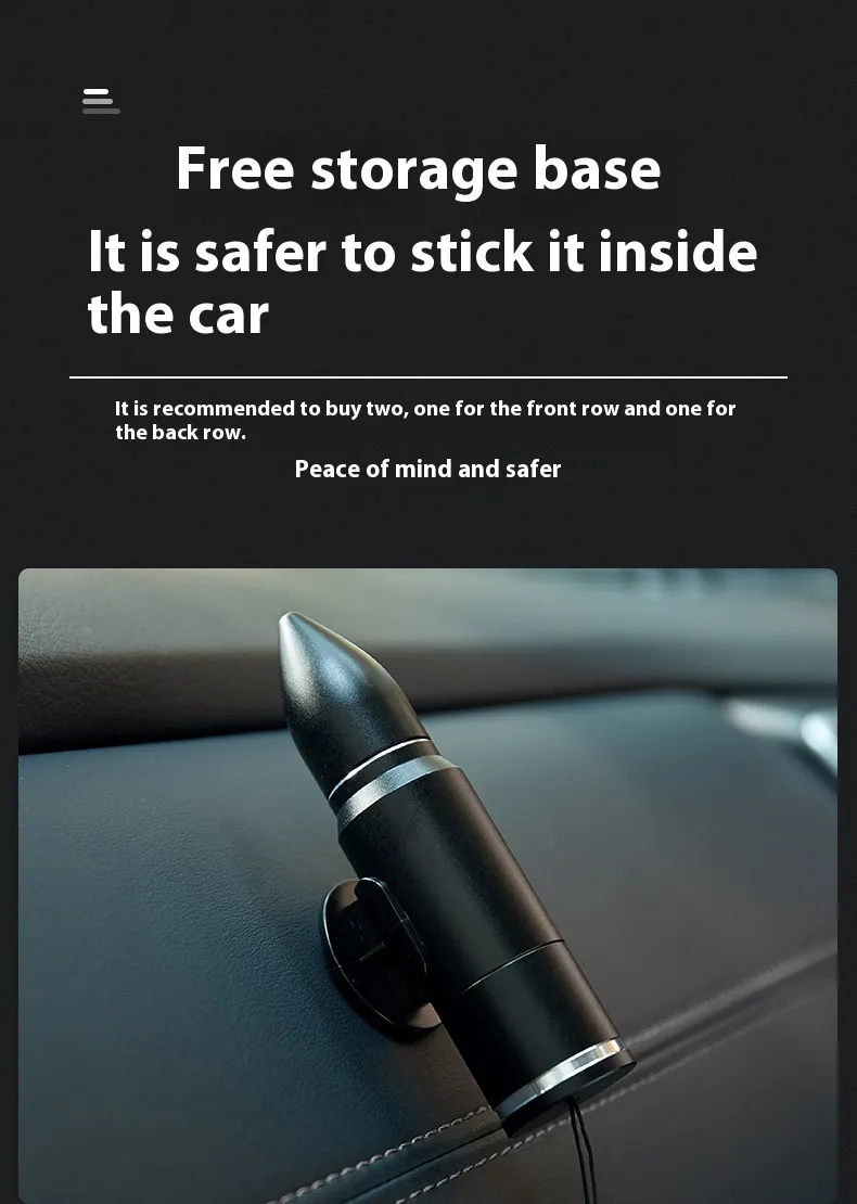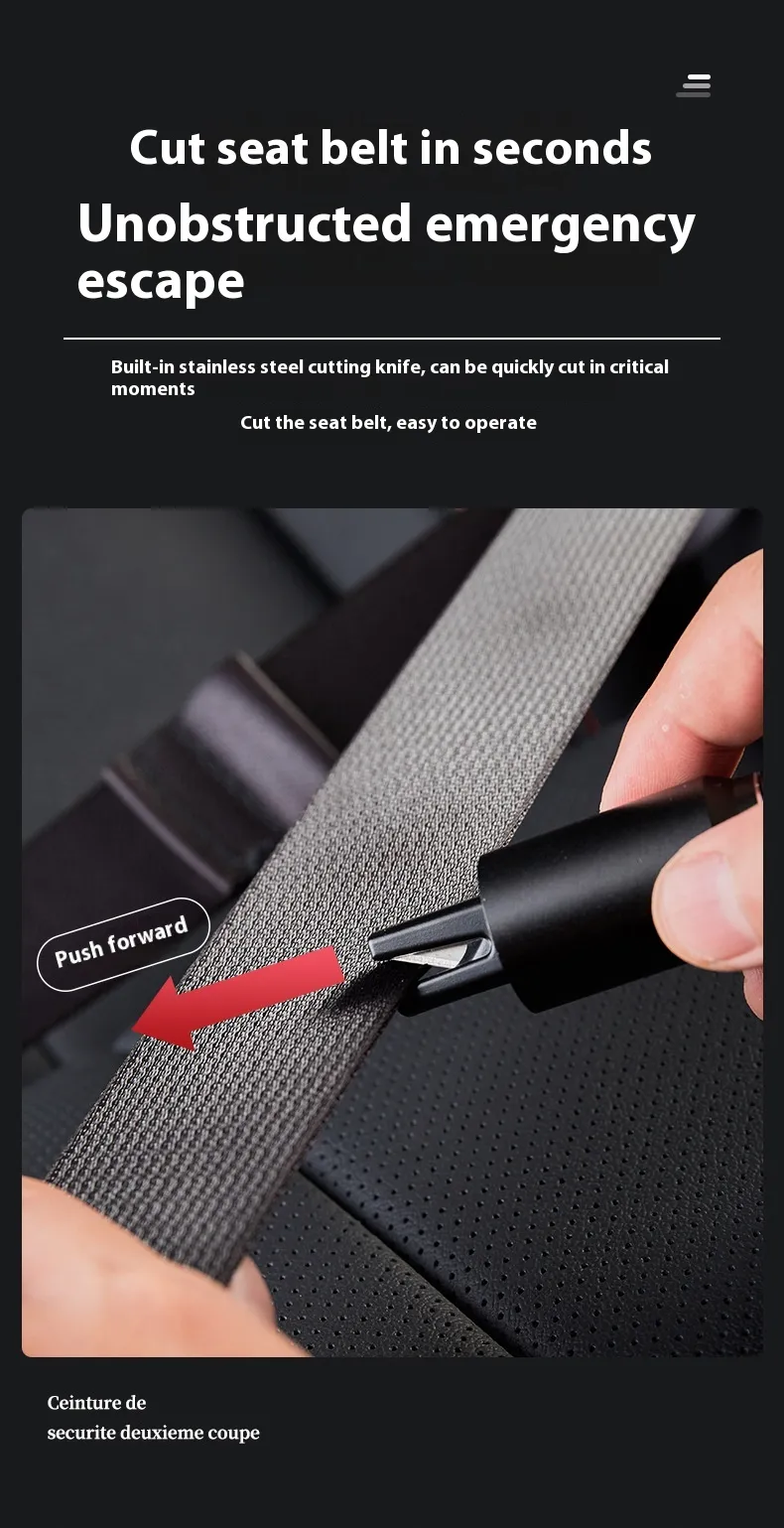 This emergency tool is a multifunctional device designed to tackle multiple emergency needs in one compact package. With its window-breaking, seatbelt-cutting, and flashlight capabilities, it provides a comprehensive solution for dealing with a range of emergency situations in your vehicle.