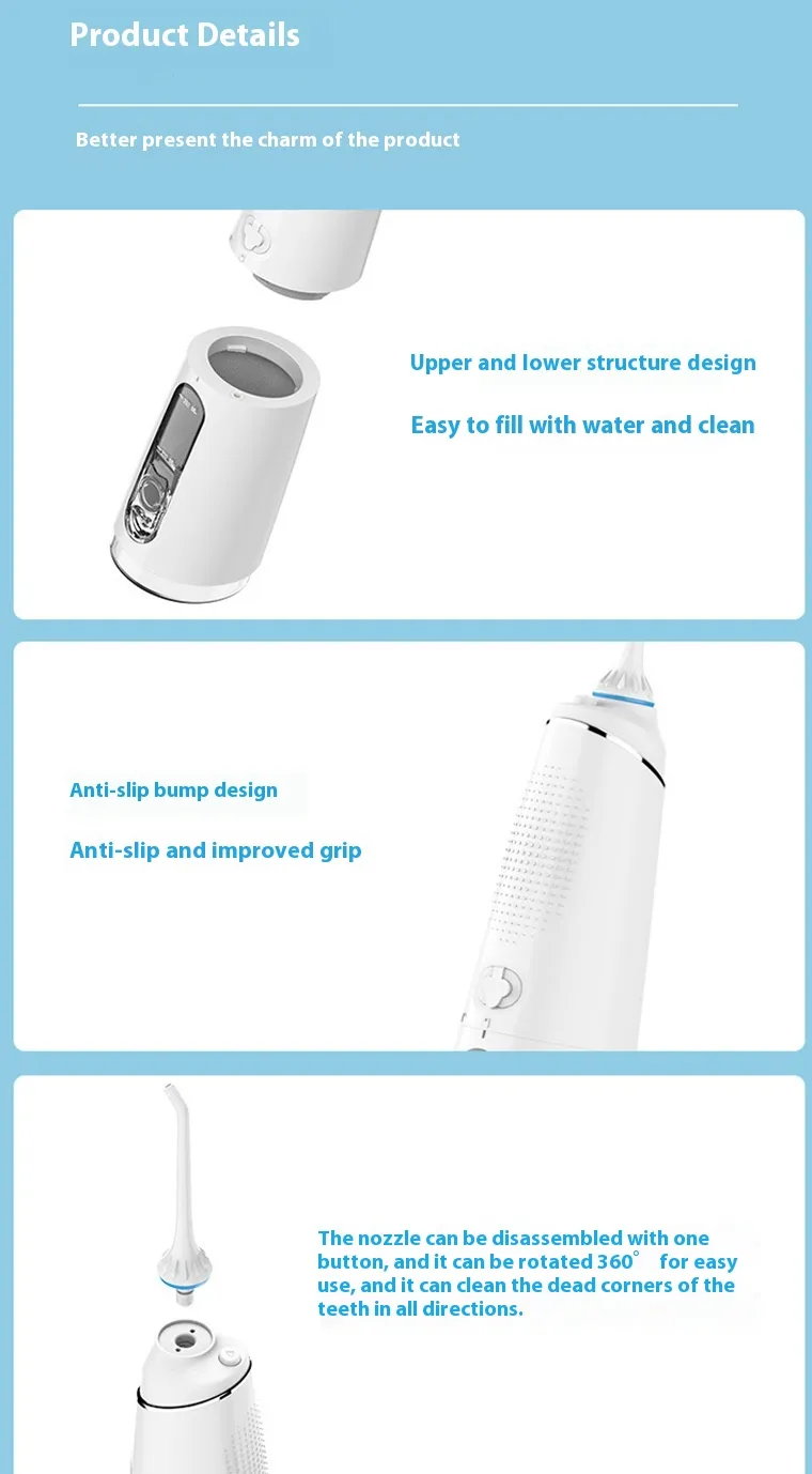 Portable and Compact Design: The lightweight, travel-friendly design allows you to take your oral care routine with you