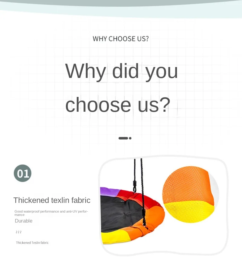 Safety is a top priority, and this swing features reinforced stitching and a solid structure to ensure a secure and stable ride. The large, wide base helps to keep the swing stable, preventing tipping or tilting, while the rope system is designed to distribute weight evenly for a smooth, gentle swing. It provides a safe environment for your child to relax, play, and enjoy the outdoors.