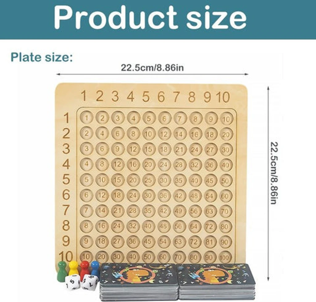 Looking for a fun and educational way to teach your kids math skills? Look no further than the Wooden Multiplication Board Game! This game is designed to help children learn and practice multiplication facts from 1 to 10 in a playful and engaging manner. The game comes with a wooden board, 100 wooden tiles with numbers and symbols, and a booklet with instructions and challenges. The game can be played solo or with up to four players, and it is suitable for ages 6 and up. The Wooden Multiplication Board Game is more than just a toy, it is a learning tool that will boost your child’s confidence and creativity in math. Order yours today and get ready for hours of fun and learning!ღã€With Numbered Multiplication Table Math Toy】ღThis board game can help teachers to create kinds of math manipulatives, Make it easier for children to learn multiplication and more fun.