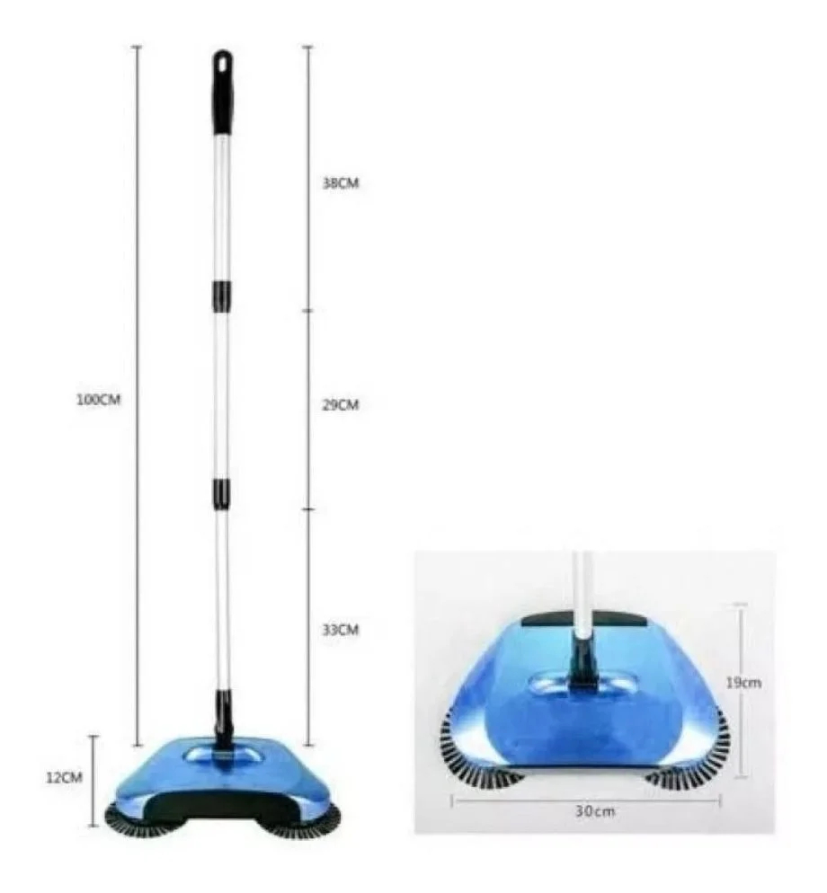 Sem Eletricidade ou baterias. Basta empurrá-la para a frente, automaticamente o lixo é coletado para o recipiente dentro da vassoura, fácil de usar e sem necessidade de instalar.