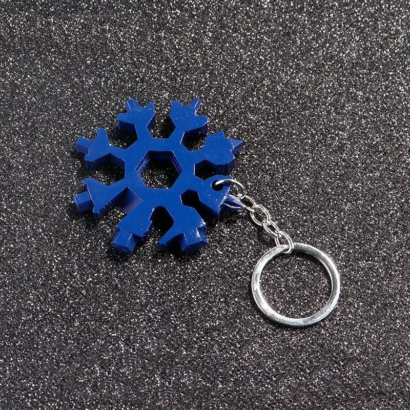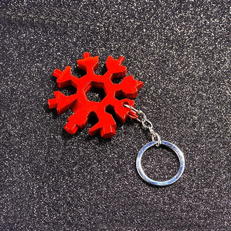 There are 18 different tools in one small, palm-sized snowflake! Including the regular Philips and flathead screwdriver, No. 3, 4, 5, 6, 7, 8 hex keys, and No. 6, 7, 8, 9, 10, 12, 14 wrenches, package opener, and a bottle opener!