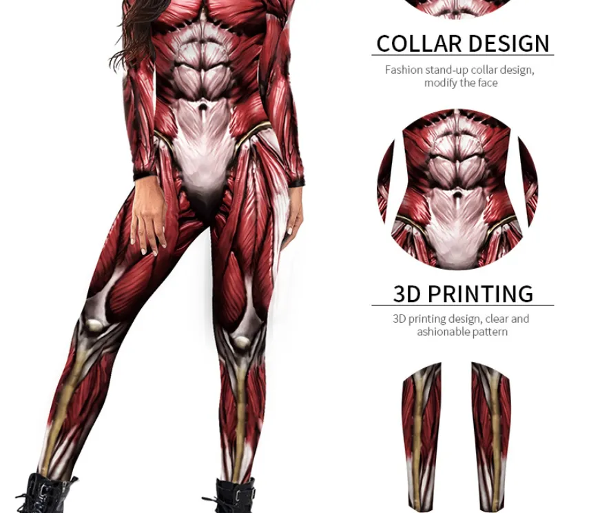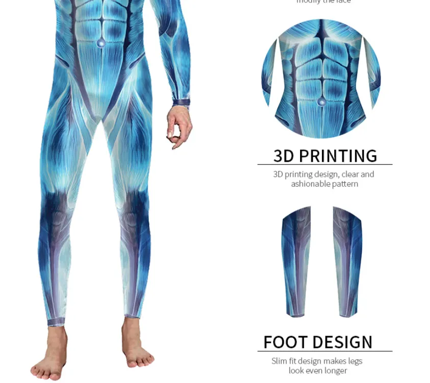 Muscle Print Bodysuit for Cosplay, Themed Parties, and Fun Fashion Statements