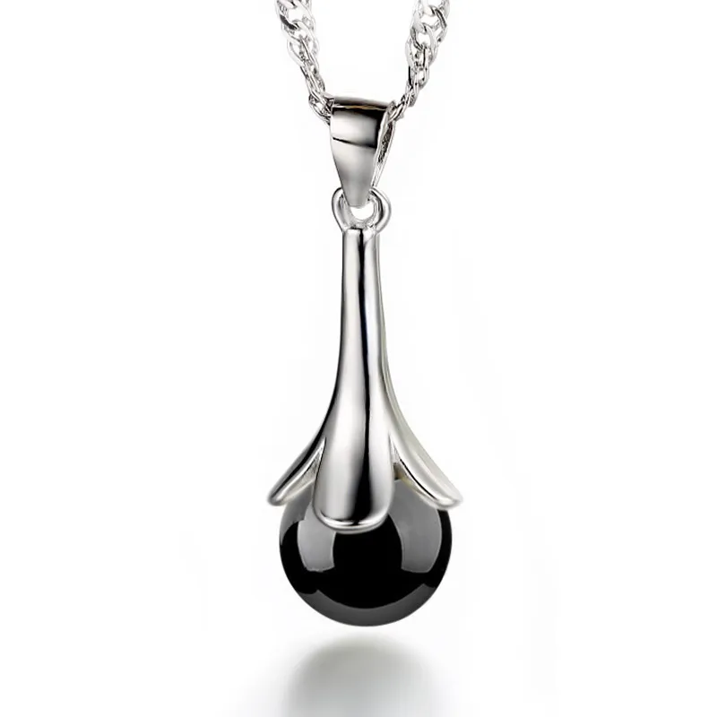 Natural Agate Stone Pendant Female Lucky Leaf Pastoral Flower Temperament Silver Plated Necklace Pendant