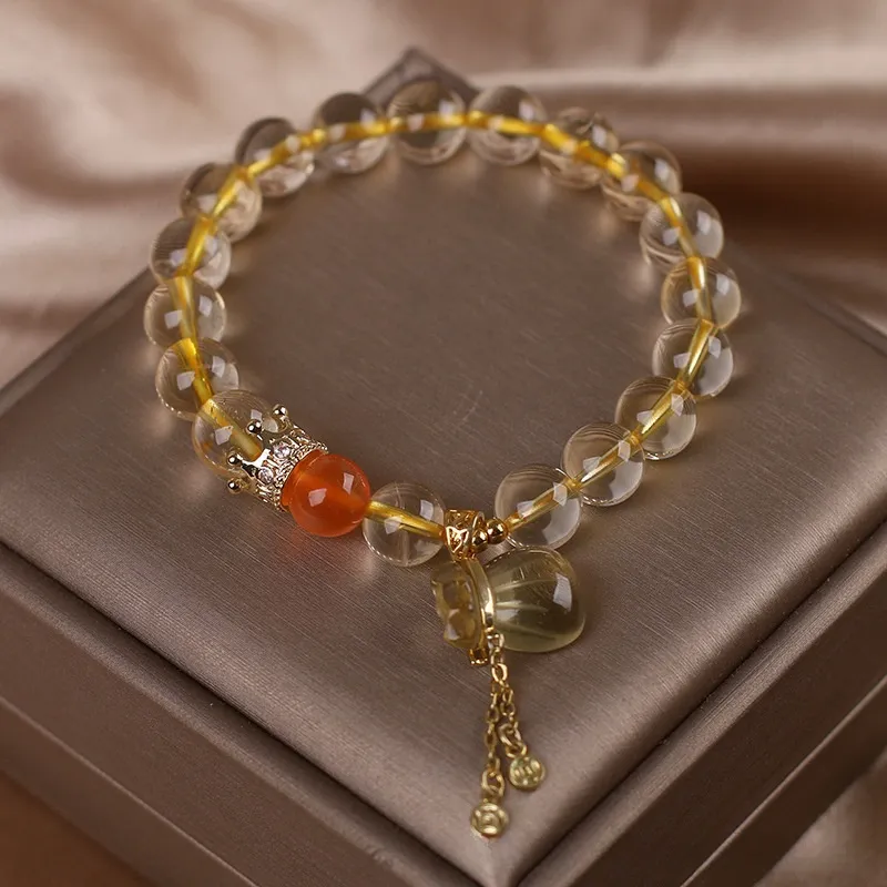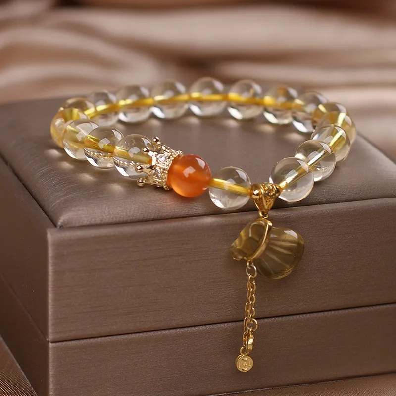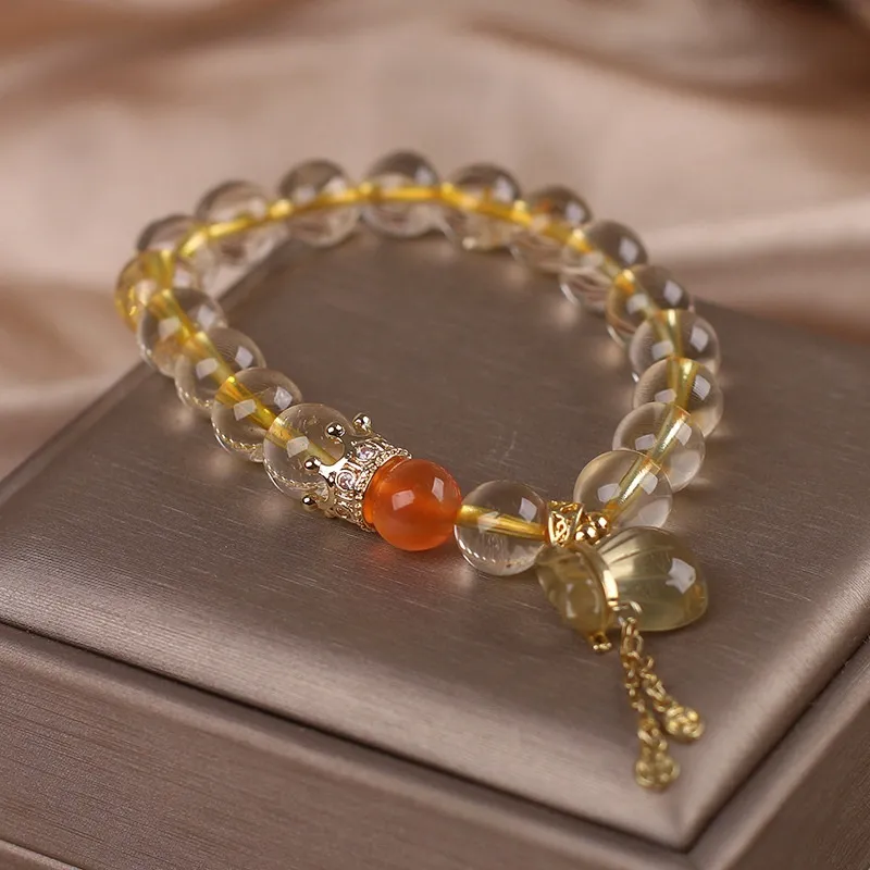 Natural Citrine Bracelet Chinese Style Light Luxury Purse Tassel Pendant