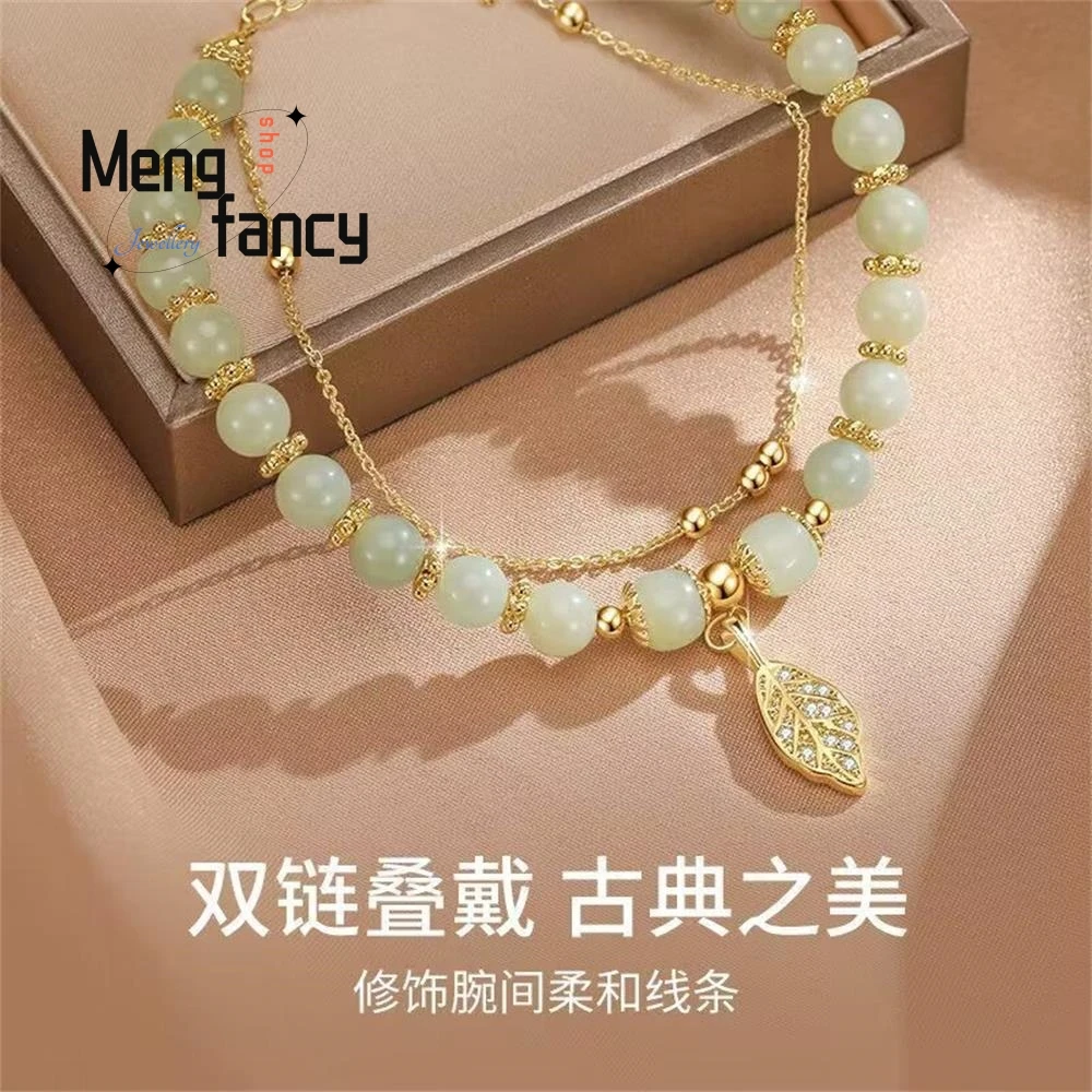 The jade leaves represent growth, prosperity, and positivity, adding a delicate and symbolic touch to the bracelet. These accents enhance