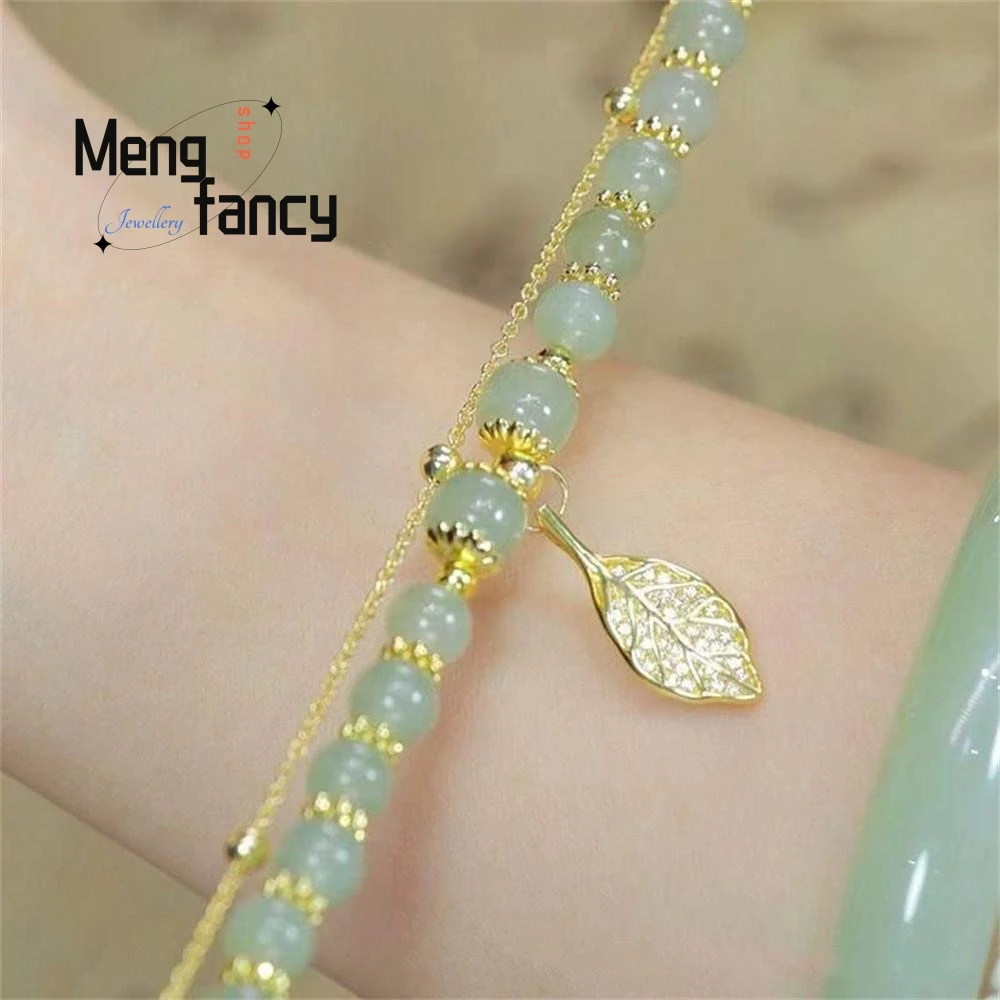 The jade leaves represent growth, prosperity, and positivity, adding depth and symbolic meaning to the bracelet. These accents bring a soft,