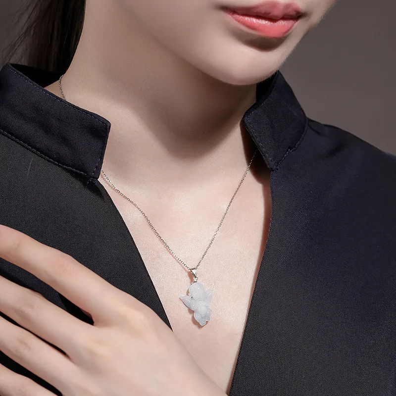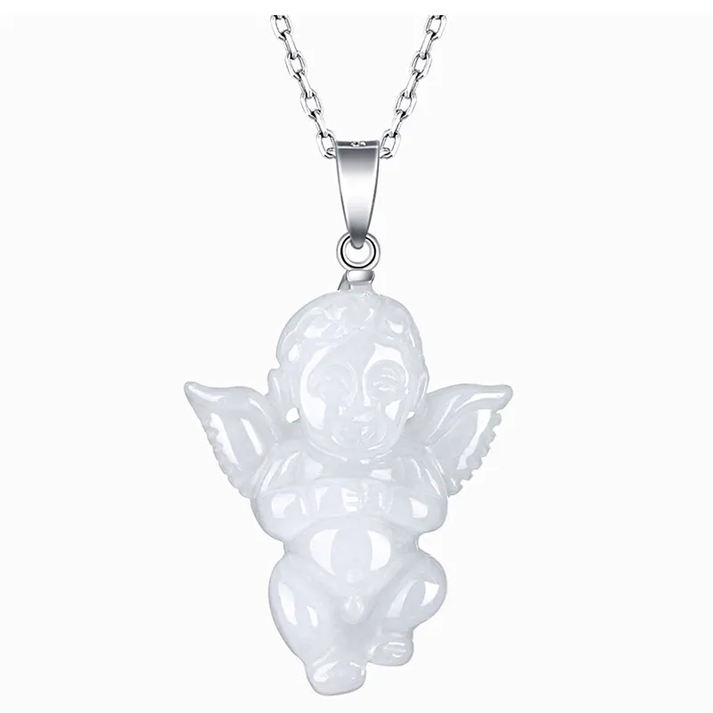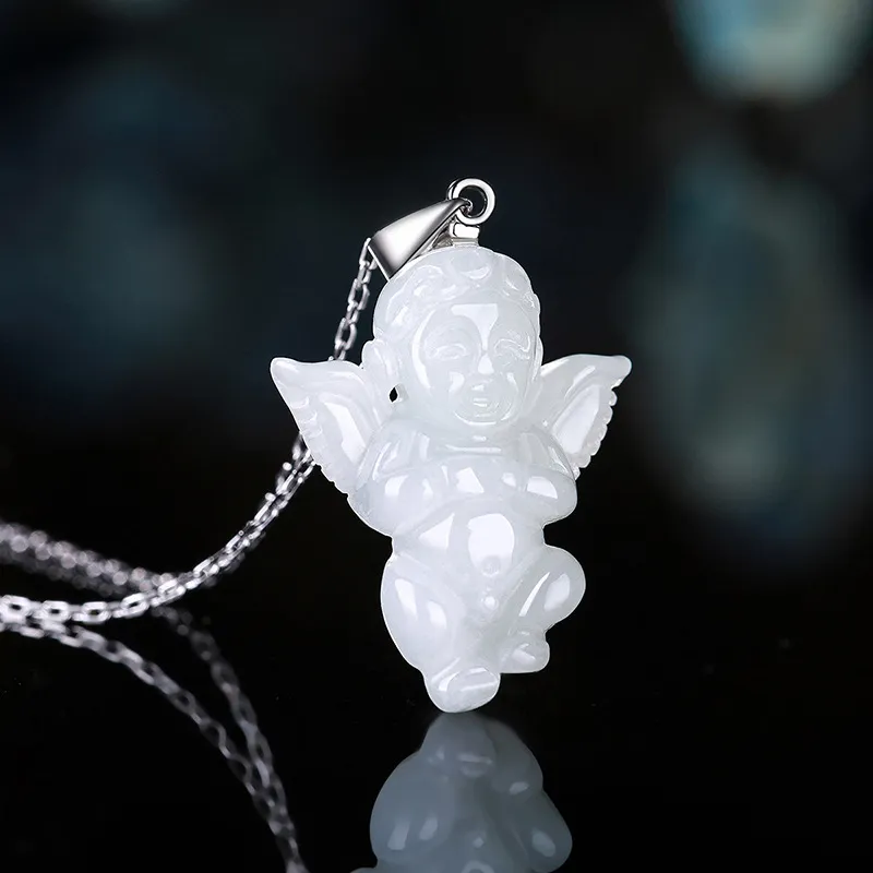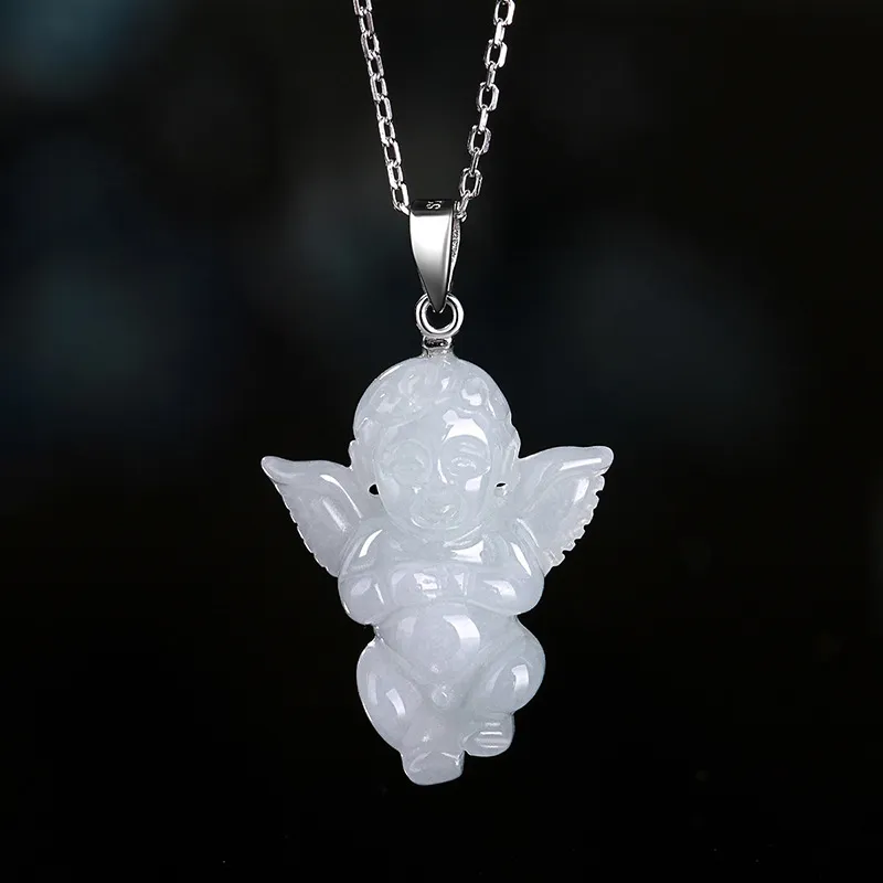 Natural Myanmar A Cargo Jade Angel Baby Pendant Silver Buckle Silver Chain Jade Pendant