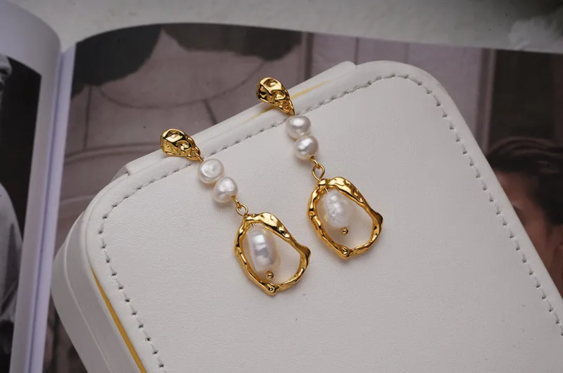 Natural Pearl Earrings Female Temperament Advanced Long Retro
