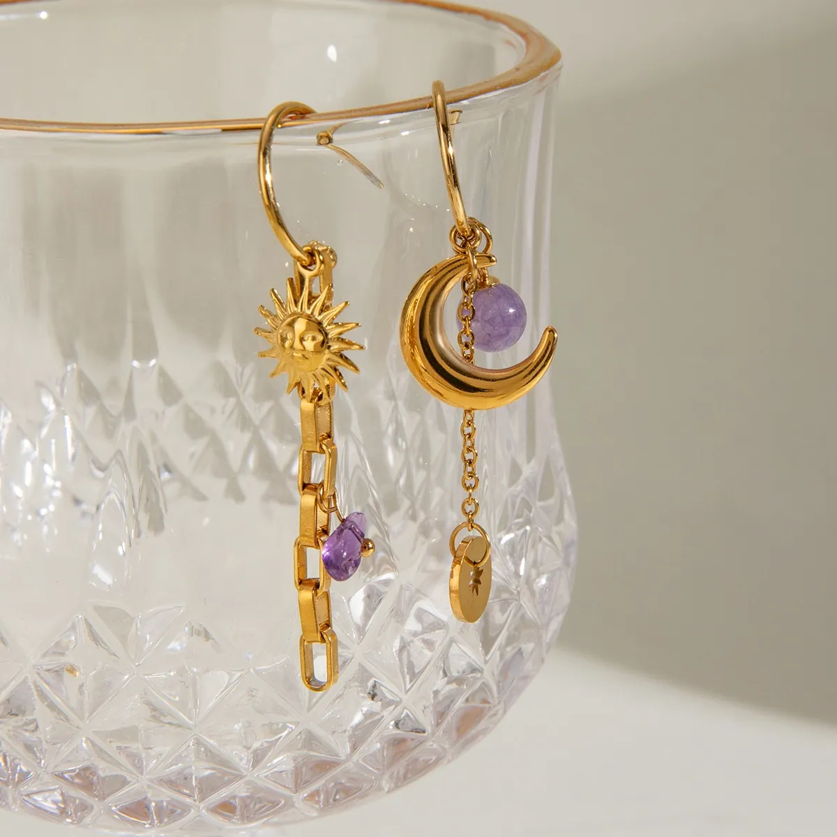 Natural Stone Hammer Pattern Sun Moon Ear Clip