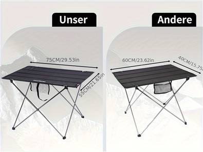 Folding Design: The table can be easily folded and stored in the included storage bag, allowing for effortless portability