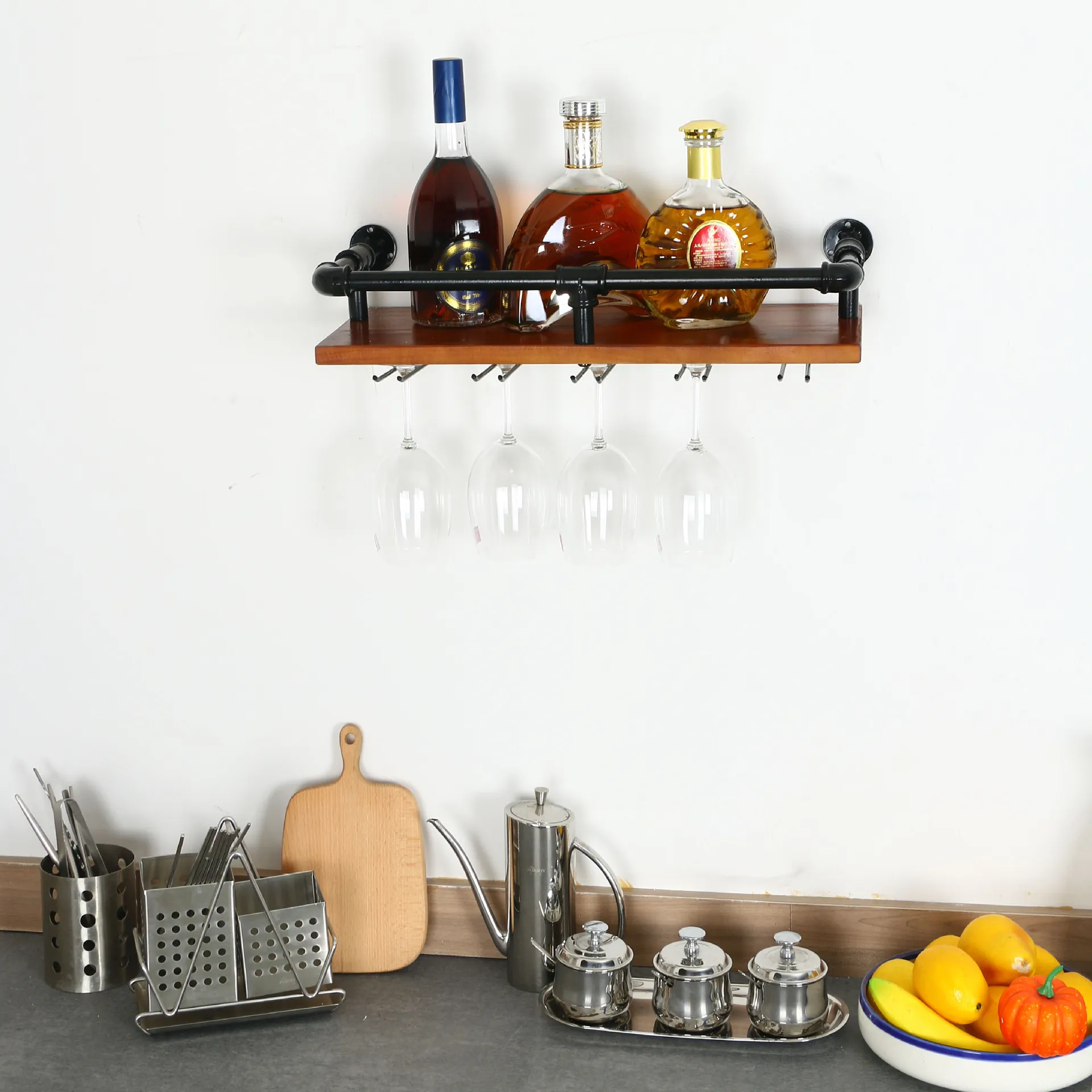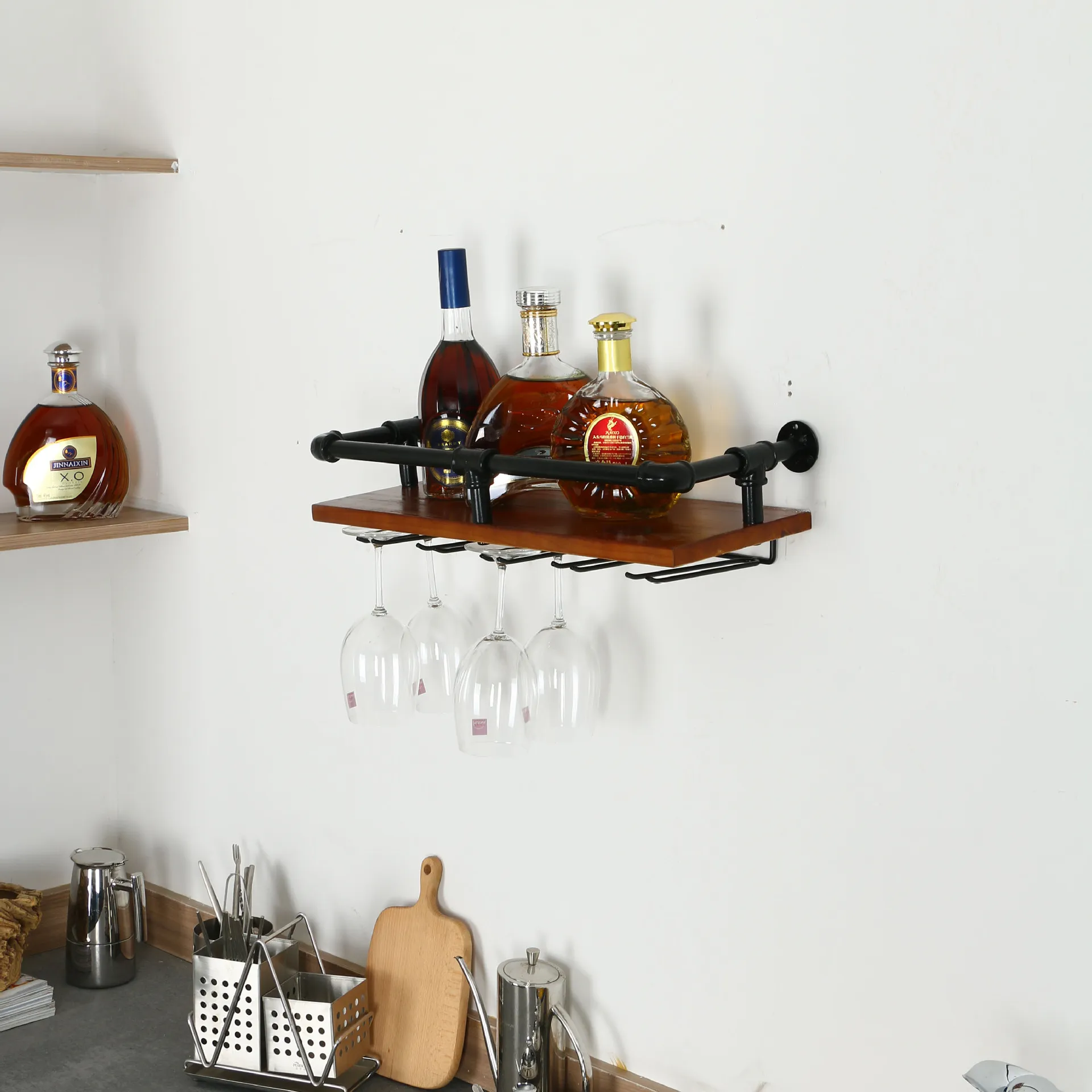 ndustrial Bar Hanging Wall Mounted Wine Rack