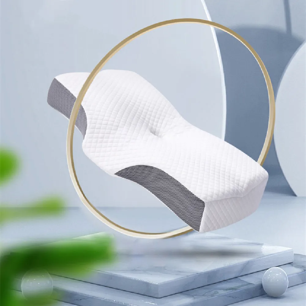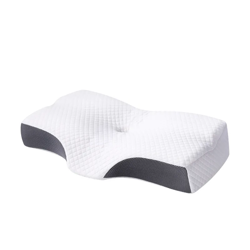 Its ergonomic butterfly shape adapts to the natural curve of the neck, offering optimal support in every position — supine, side or on your stomach.