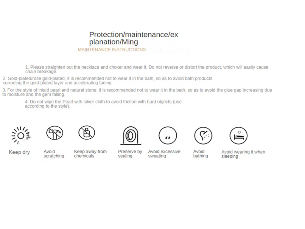 Avoid Chemicals: Remove your necklace before using lotions, perfumes, or harsh cleaning products, as these can damage the