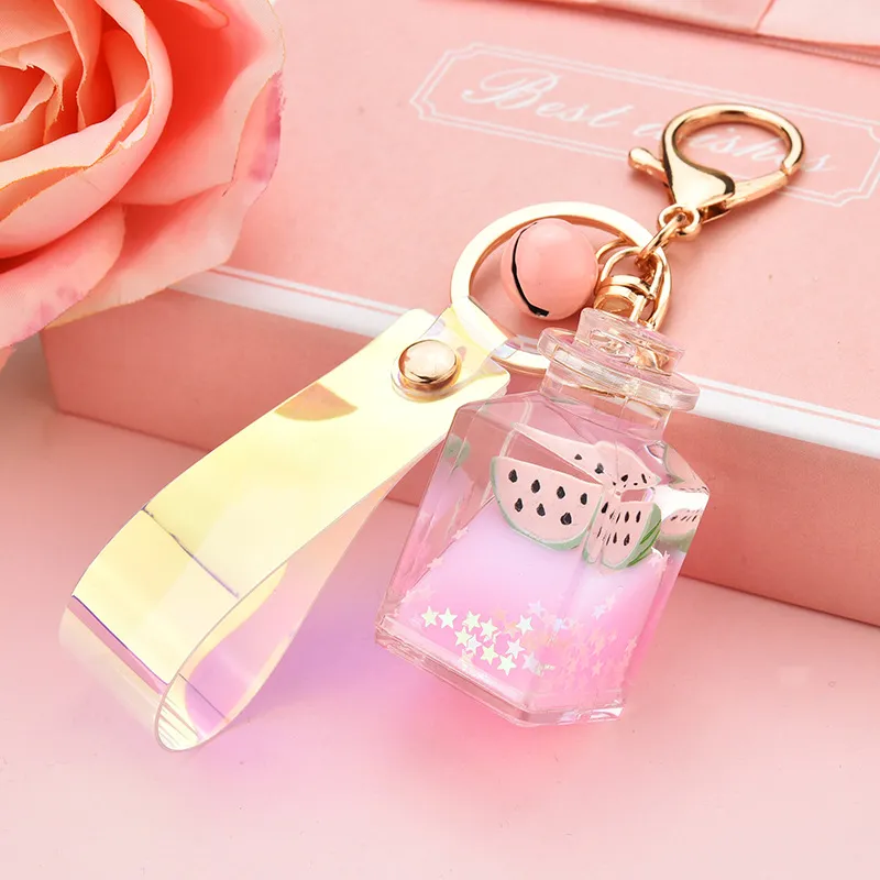 Net Red Acrylic Sliced Fruit Floating Liquid Keychain