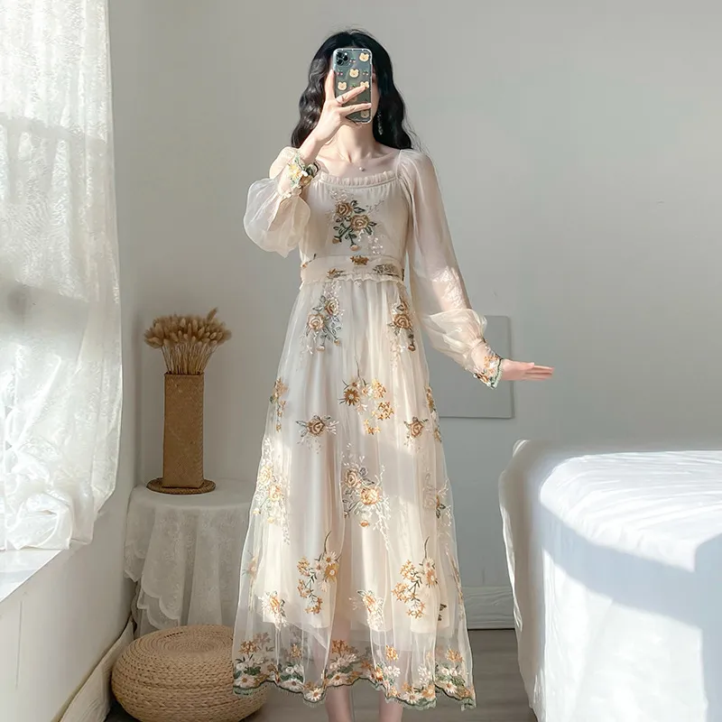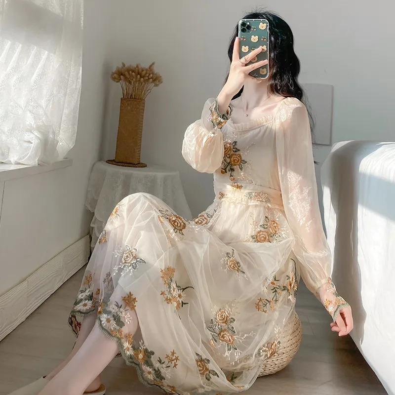 Sophisticated and Feminine: The combination of the sheer net fabric and embroidered detailing creates a soft, feminine look