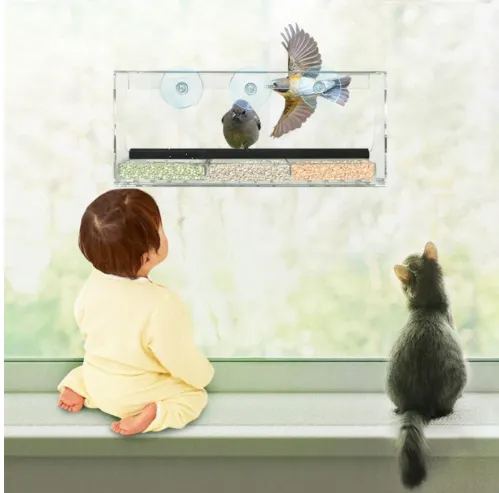 Our acrylic bird feeder is crafted from premium, weather-resistant acrylic that’s built to withstand outdoor elements while providing a crystal-clear view of feeding birds. The transparent design not only makes birdwatching enjoyable but also allows birds to feel safe and comfortable as they eat. The sturdy material is resistant to cracking, ensuring long-lasting use and providing a reliable feeding station for a variety of bird species.