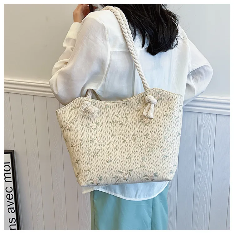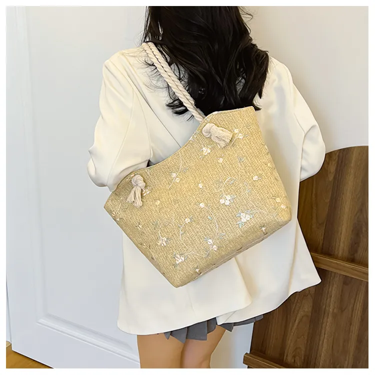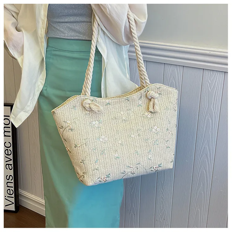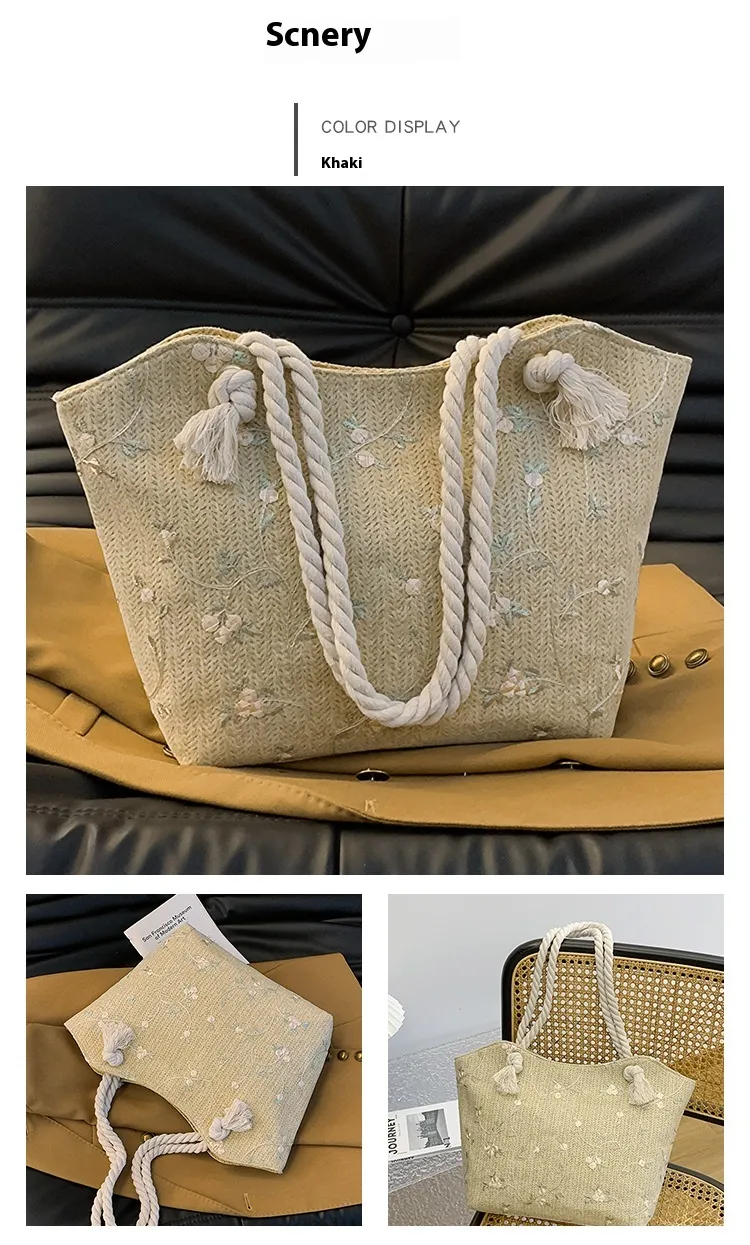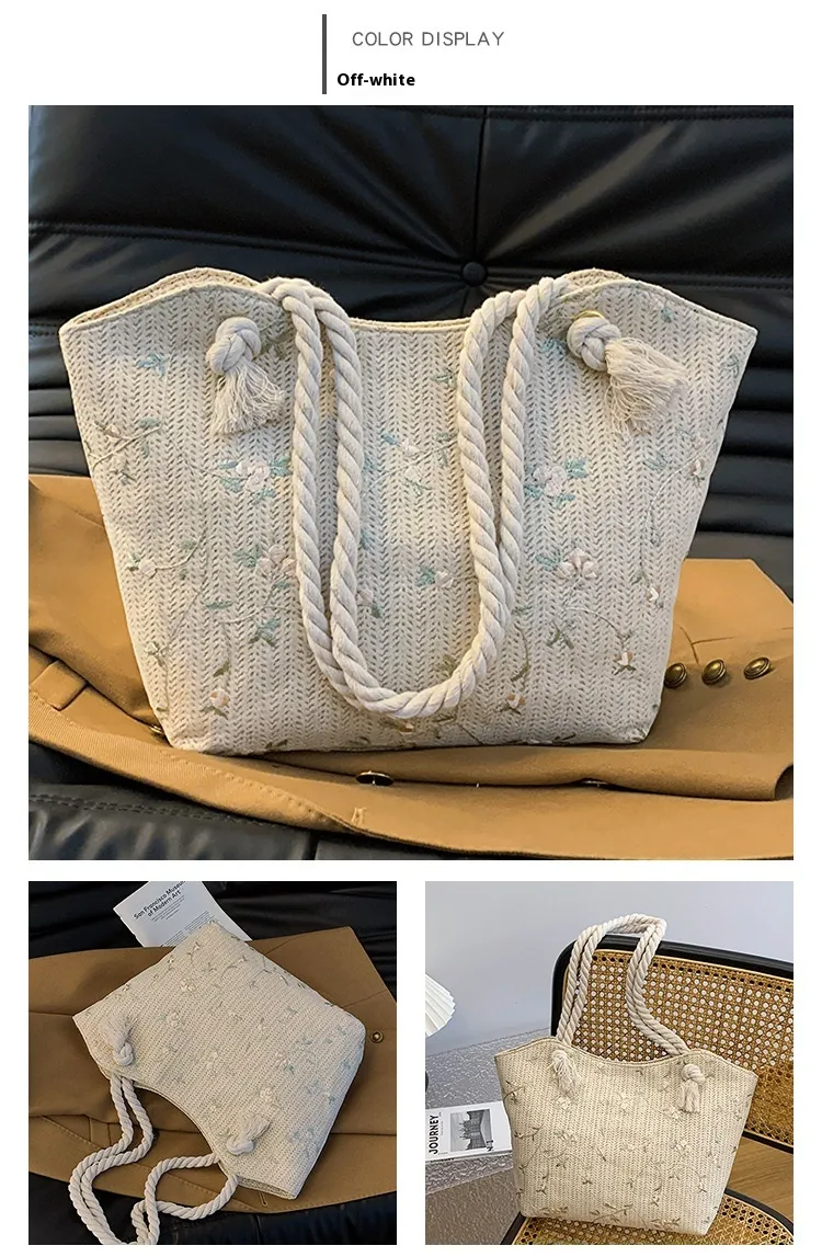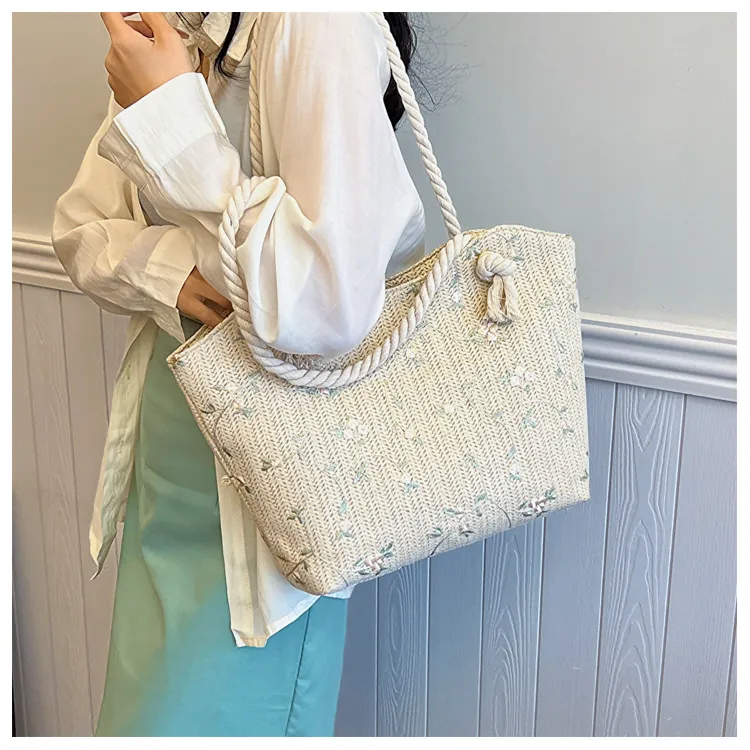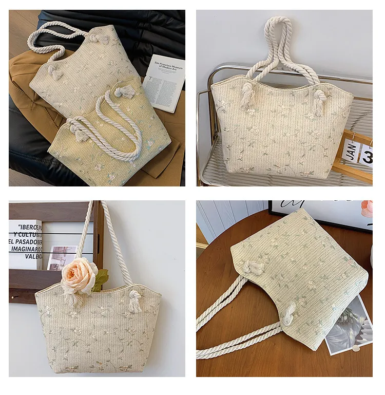 New And Simple Straw Bag Lace Bag Ins Straw Shoulder Bag Large Capacity Flower Fashion Women Handbag