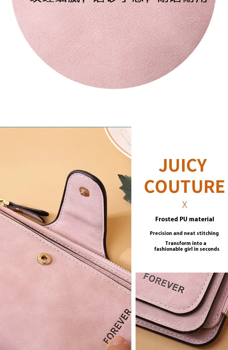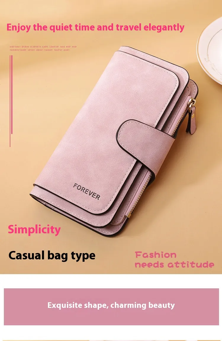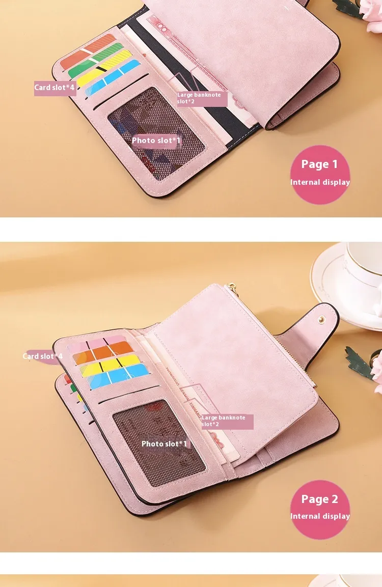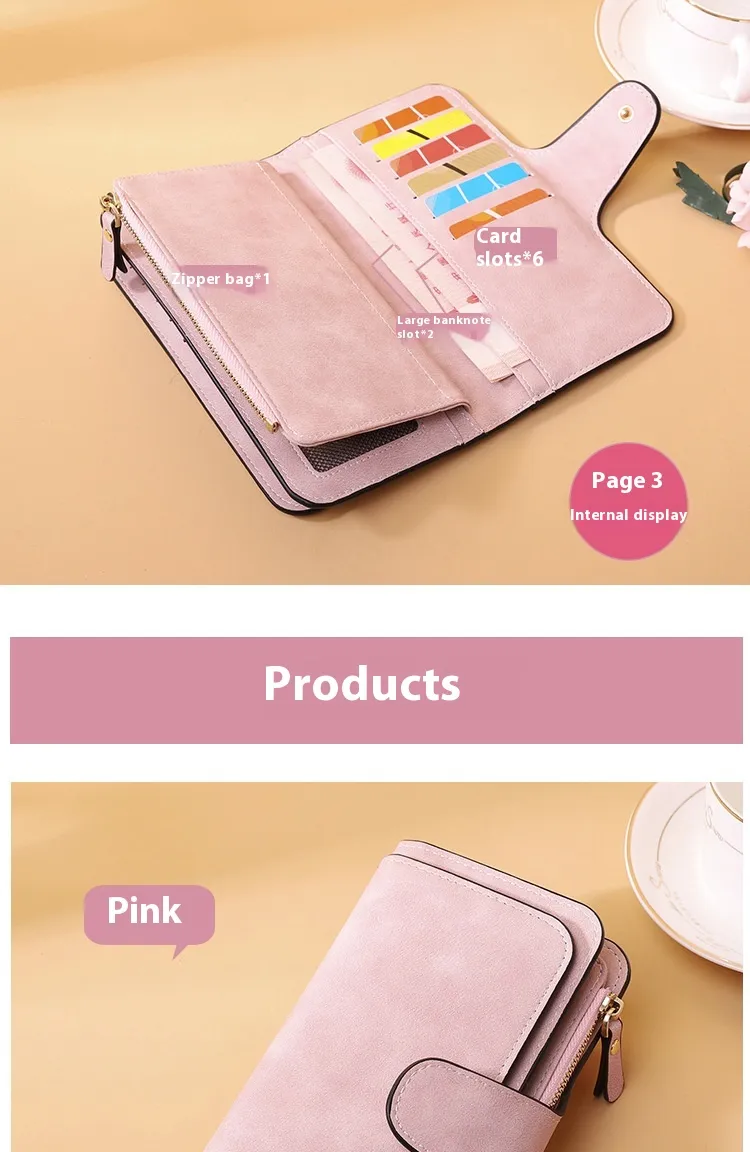 New Buckle Women's Long Wallet Three Fold Fashion Women's Bag Multi-card Women's Purse Frosted Two-tone Fabric