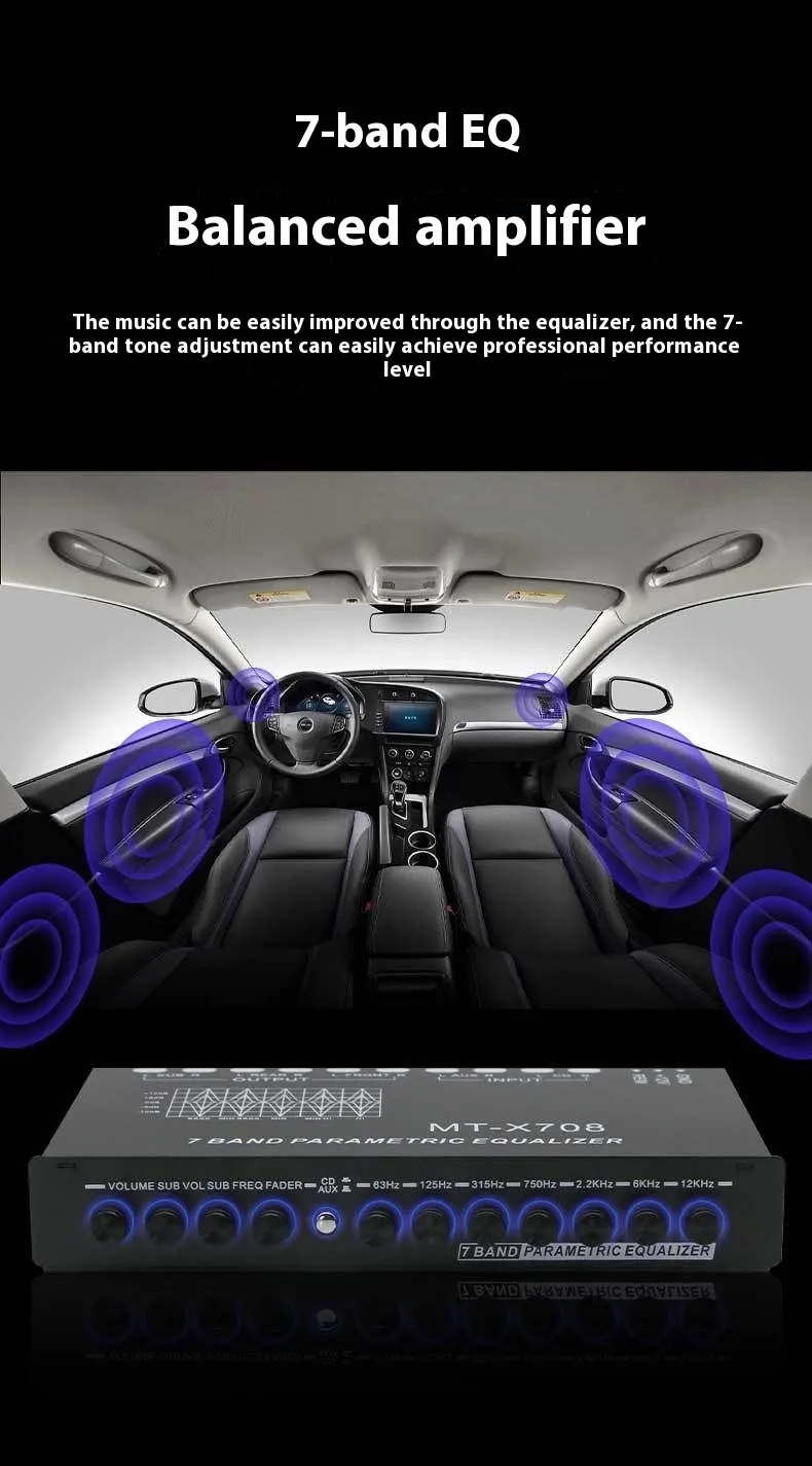 Designed for easy installation, the New Car Equalizer 7-Segment Tuning Division is compatible with most car audio systems. The plug-and-play design allows for quick setup, and the universal compatibility ensures that it can integrate seamlessly with your existing car stereo or sound system. No complex wiring is needed—simply connect the equalizer and enjoy a new level of audio control.
