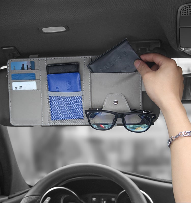 The visor organizer helps organize glasses cards CD etc and keep them in place, making your car interior environment tidy and providing convenience when you want to get them