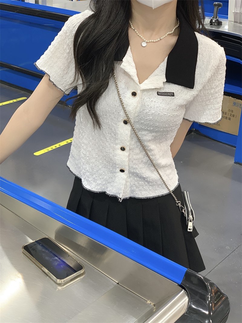 New Contrast Color Short Sleeve Shirt For Women