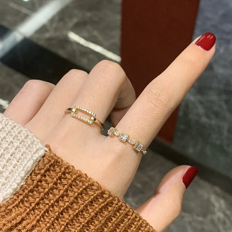 Color: Gold A/Rectangular Alloy Point Diamond-Adjustable Opening Ring, Gold B/Twist-Adjustable Opening Ring