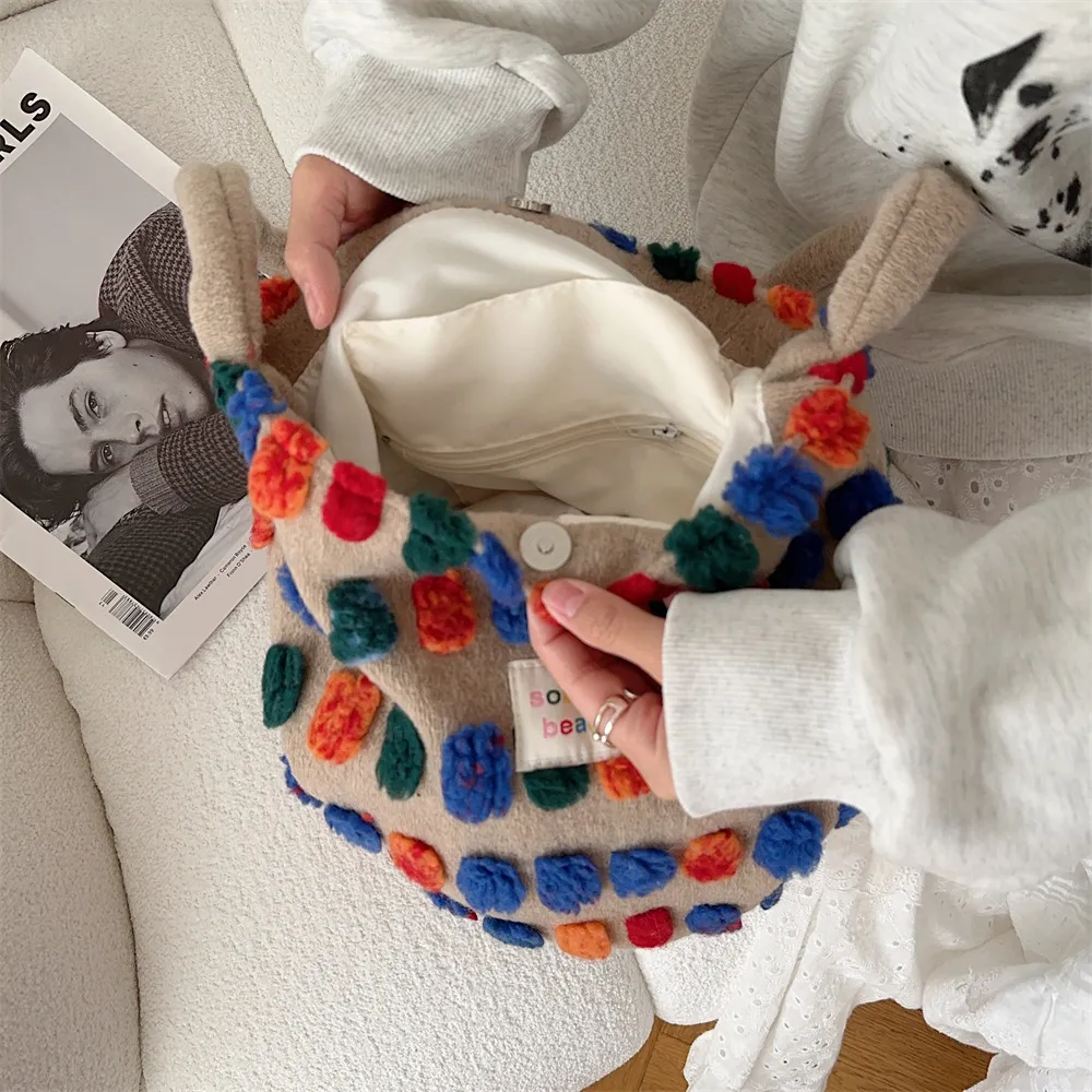 New Crossbody Plush Bucket Portable Shoulder Bag