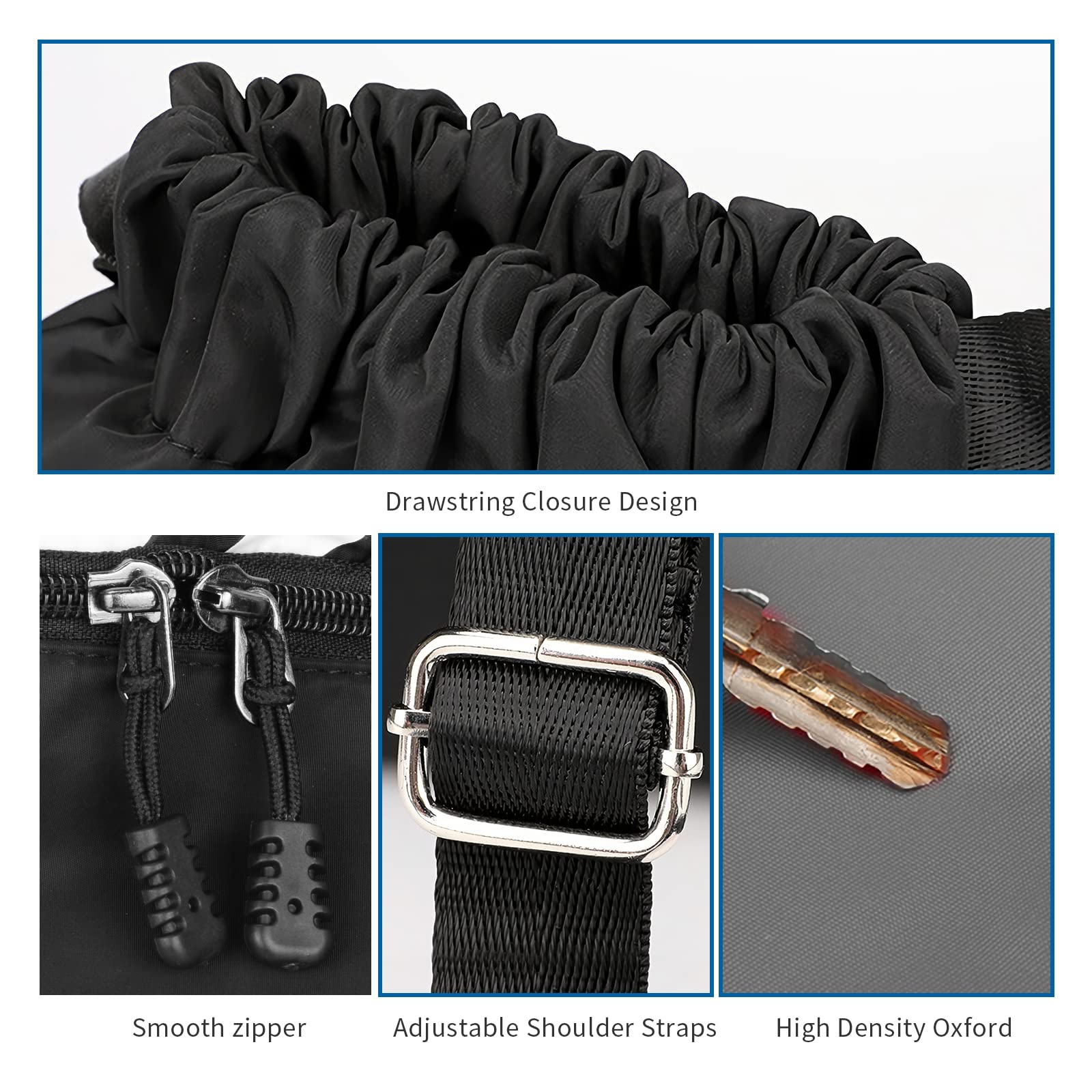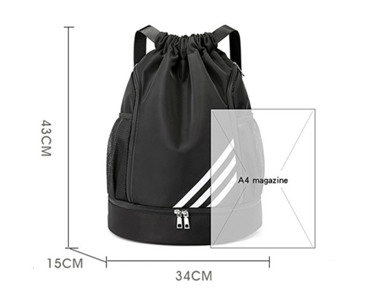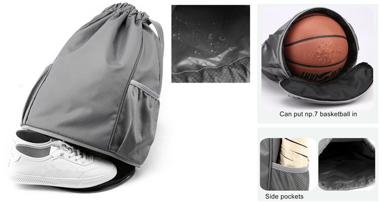 - Multi-Pocket Design: Side mesh pockets with elastic straps on both sides of the sports bag backpack can accommodate water bottles, umbrellas; front pocket can store tissues and toiletries; the bottom is an independent shoe compartment;There is also an extra interior zippered pocket inside the rope bag, which is big enough to hold small valuables like sports watch, wallet, etc. to avoid the pickpockets