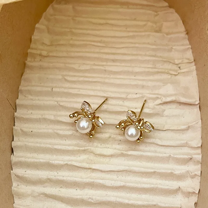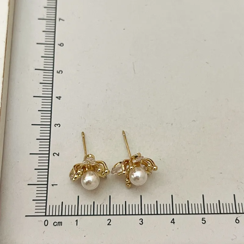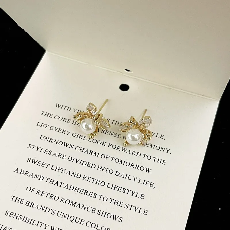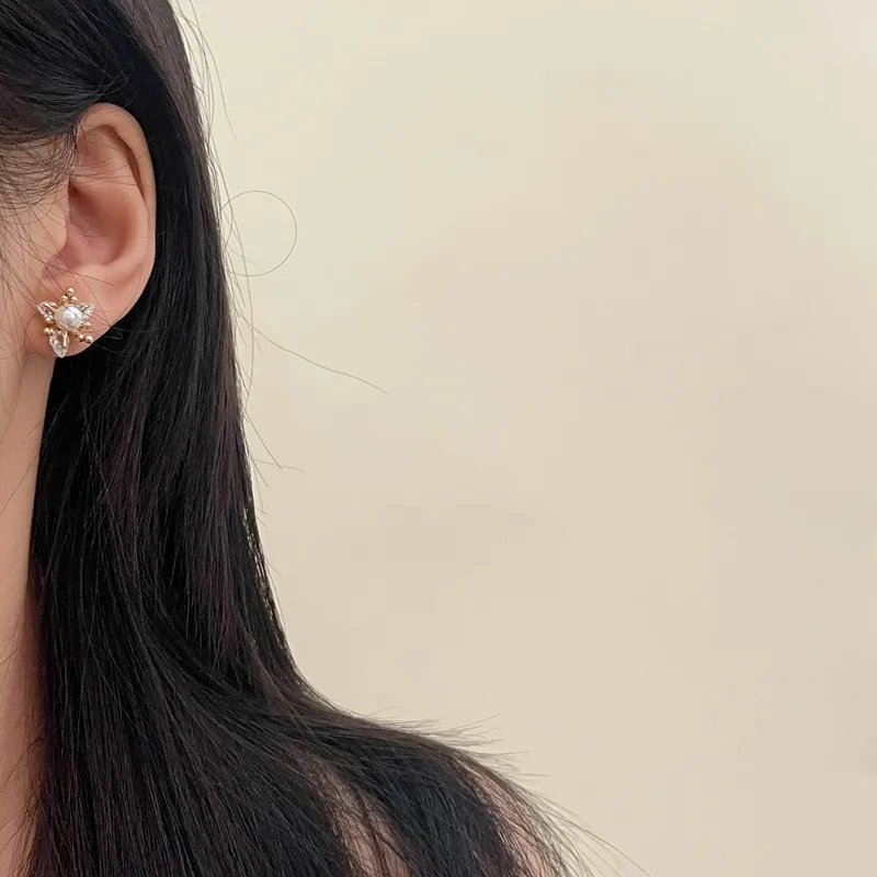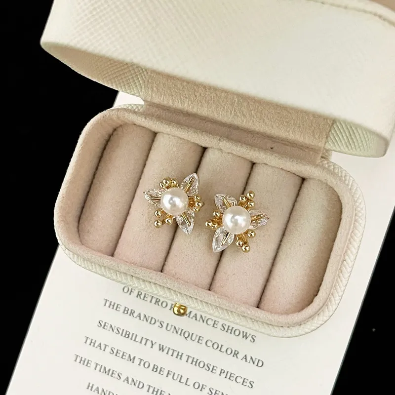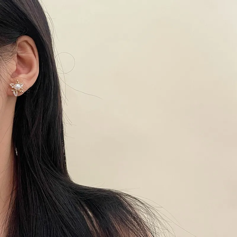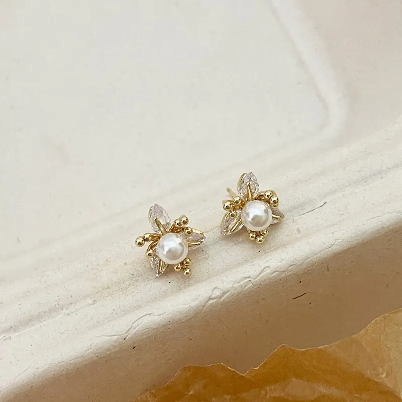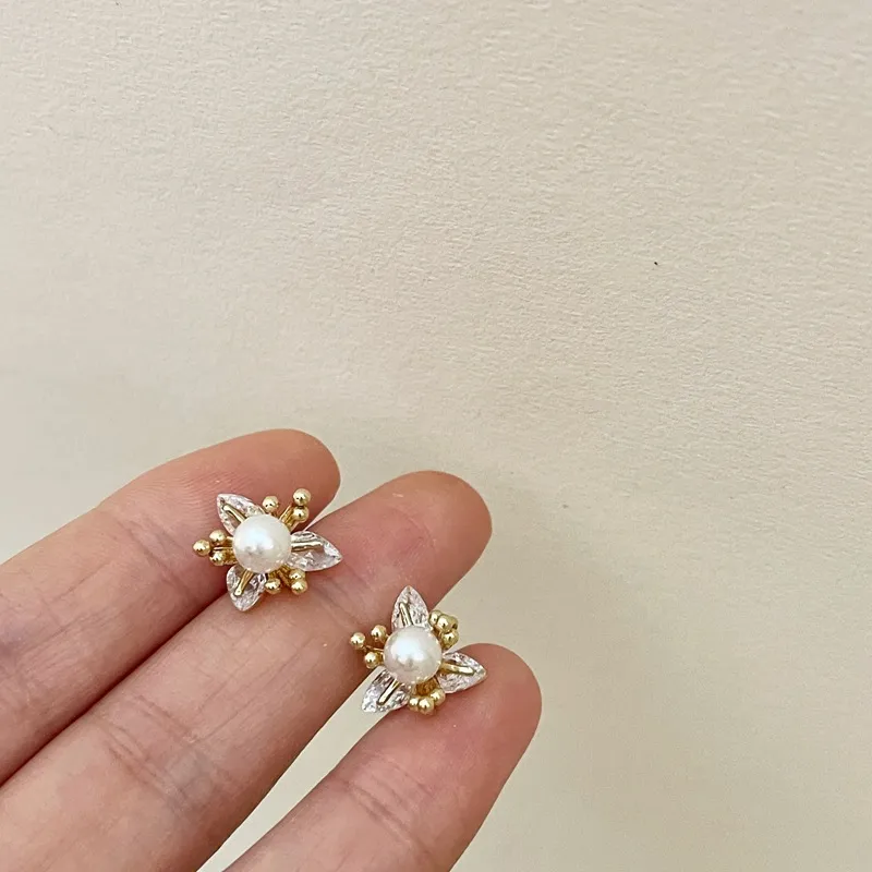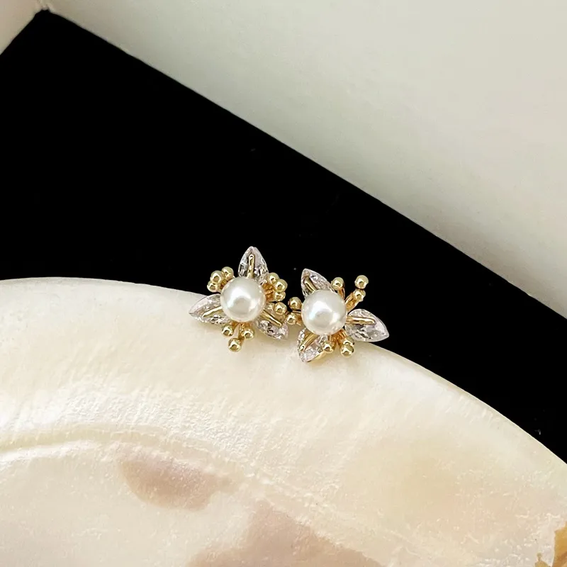 New Exquisite Fashion All-match Small Diamond Pearl Flower Earrings