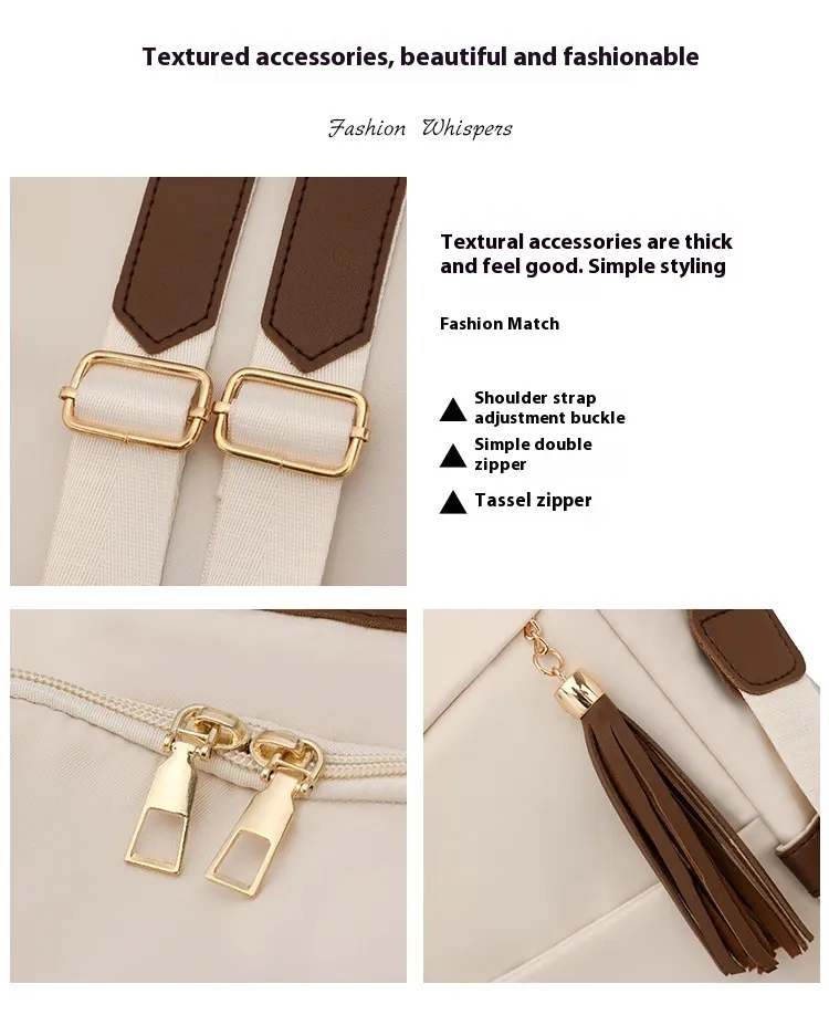 The chic tassel detailing adds a touch of sophistication and personality to this backpack. It’s a subtle yet stylish feature that elevates its minimalist design.